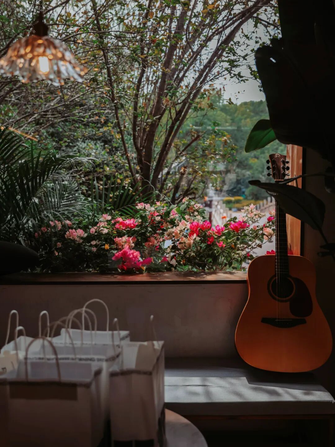 推开屋顶咖啡的门,最先扑面而来的是咖啡豆烘焙的焦香,混着创意特调的新奇气息,勾着人的味蕾。店里处处是细节:木质桌椅和窗框透着复古感,巨大的窗户将五柳公园的绿意框成一幅流动的画,天花板上几根实木横梁,让空间多了几分自然的厚重。