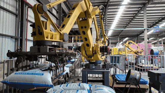 11月21日,走进位于枝江市姚家港化工园的湖北佳玛驰生态农业有限公司生产车间,一包包封装好的肥料在传送带上被机械臂抓取到叉车上,运上厂房外的货车。