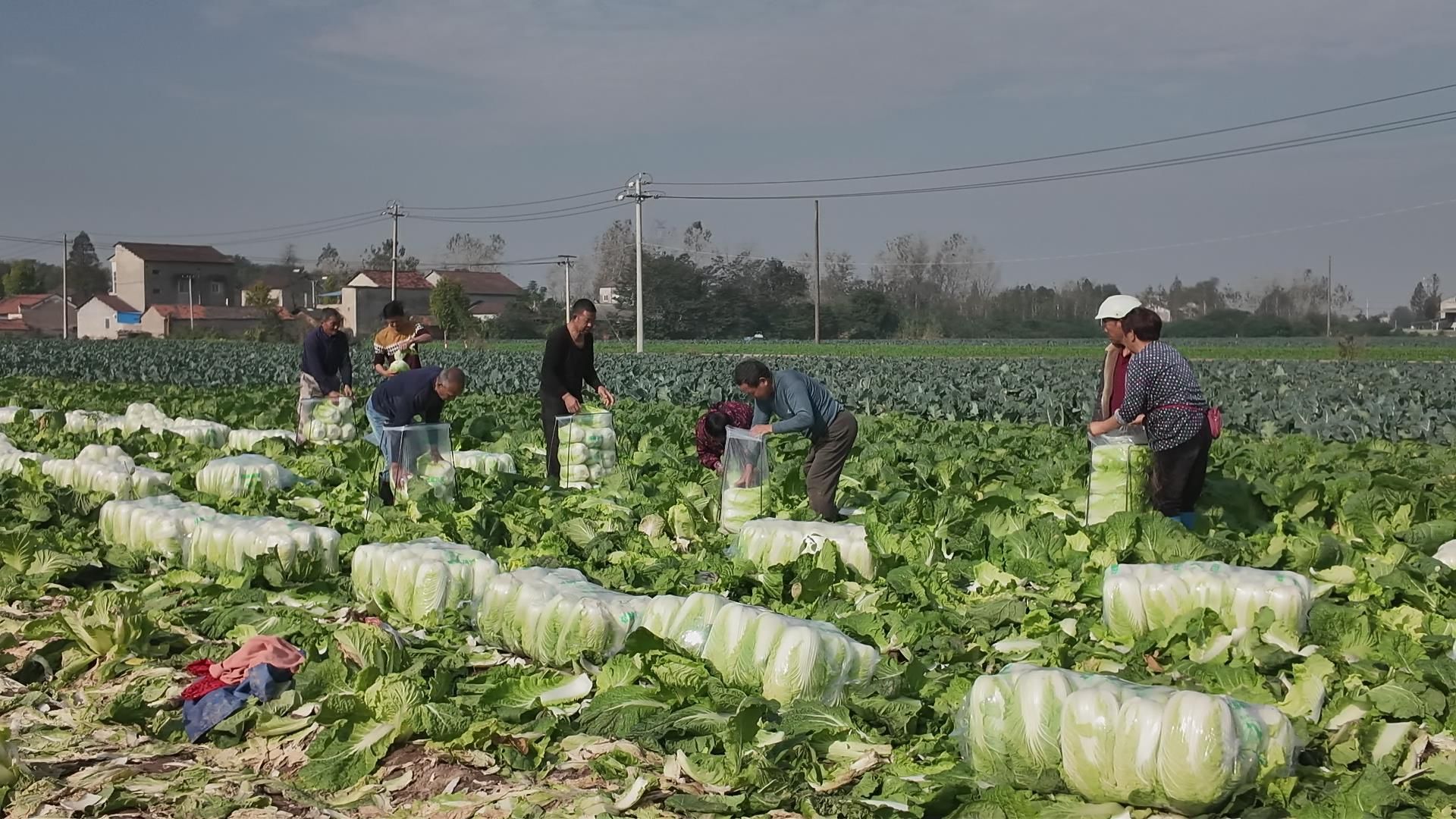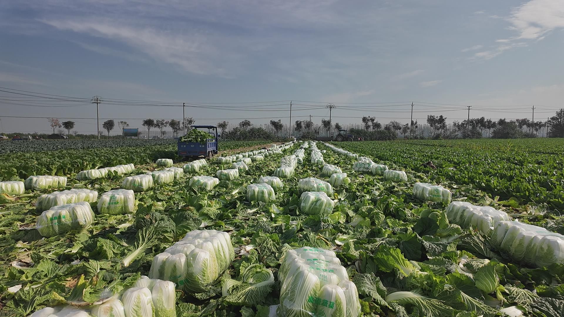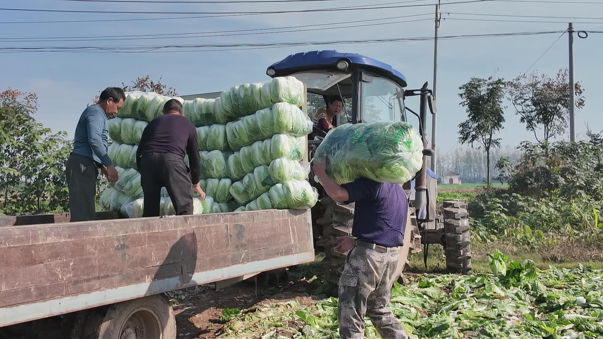 走进赵楼子村白菜种植基地,一棵棵大白菜个大饱满、翠绿鲜嫩,菜农们分工协作,动作利落地将白菜从土里挖出,采收、装袋、搬运,一道道工序井然有序。