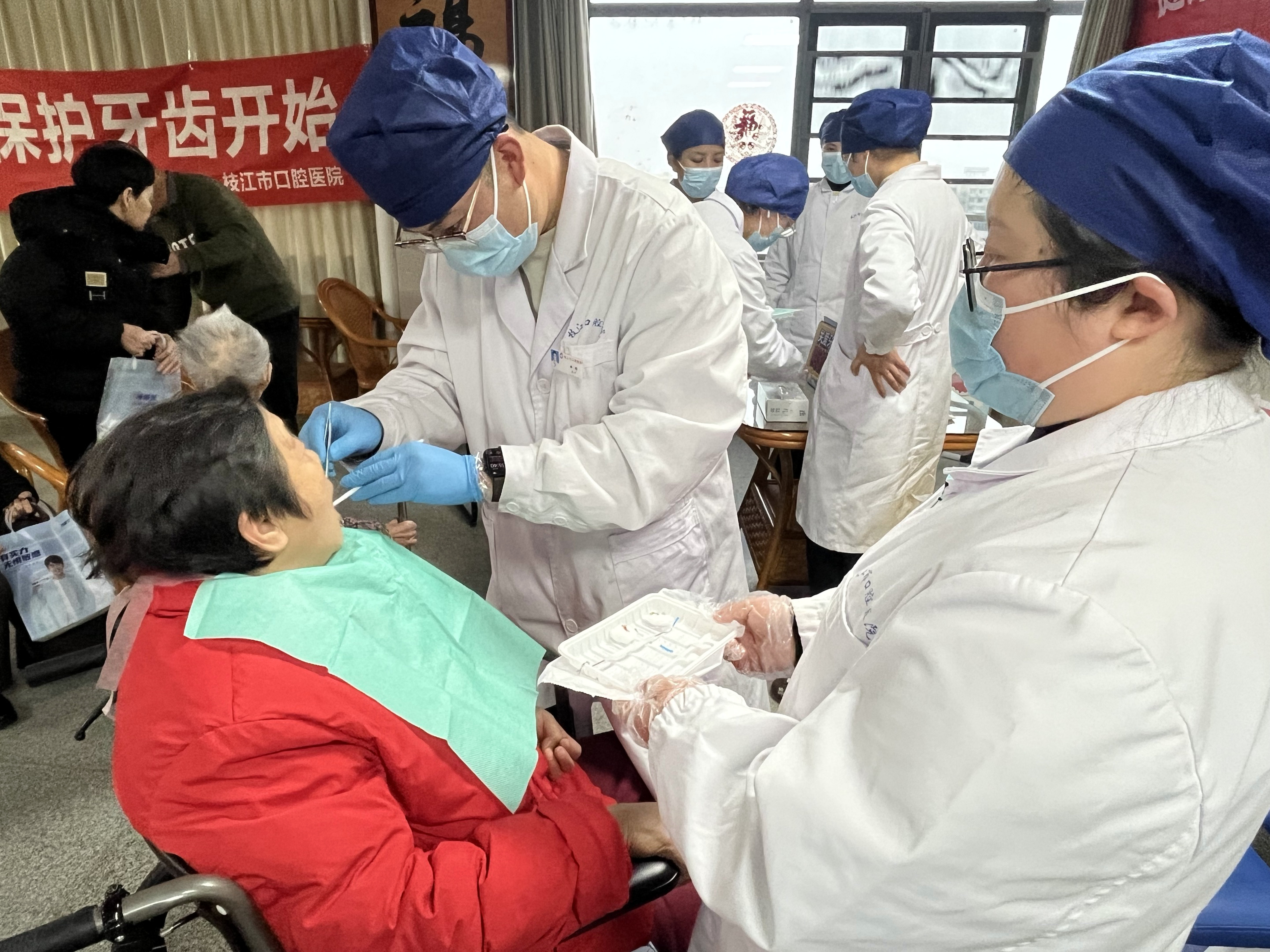 随后的义诊环节,口腔医生们手持专业器械,为一位位长者细致检查,不放过任何一个细节。有的老人牙齿松动,医生仔细解释保护方案;有的老人牙龈萎缩,医生示范如何正确清洁;还有的老人戴着假牙不适,医生一遍遍调整,直至老人露出舒心的笑容。一下午的时间,义诊团队共为医养中心50余位入住老人提供了细致的口腔检查与健康指导。