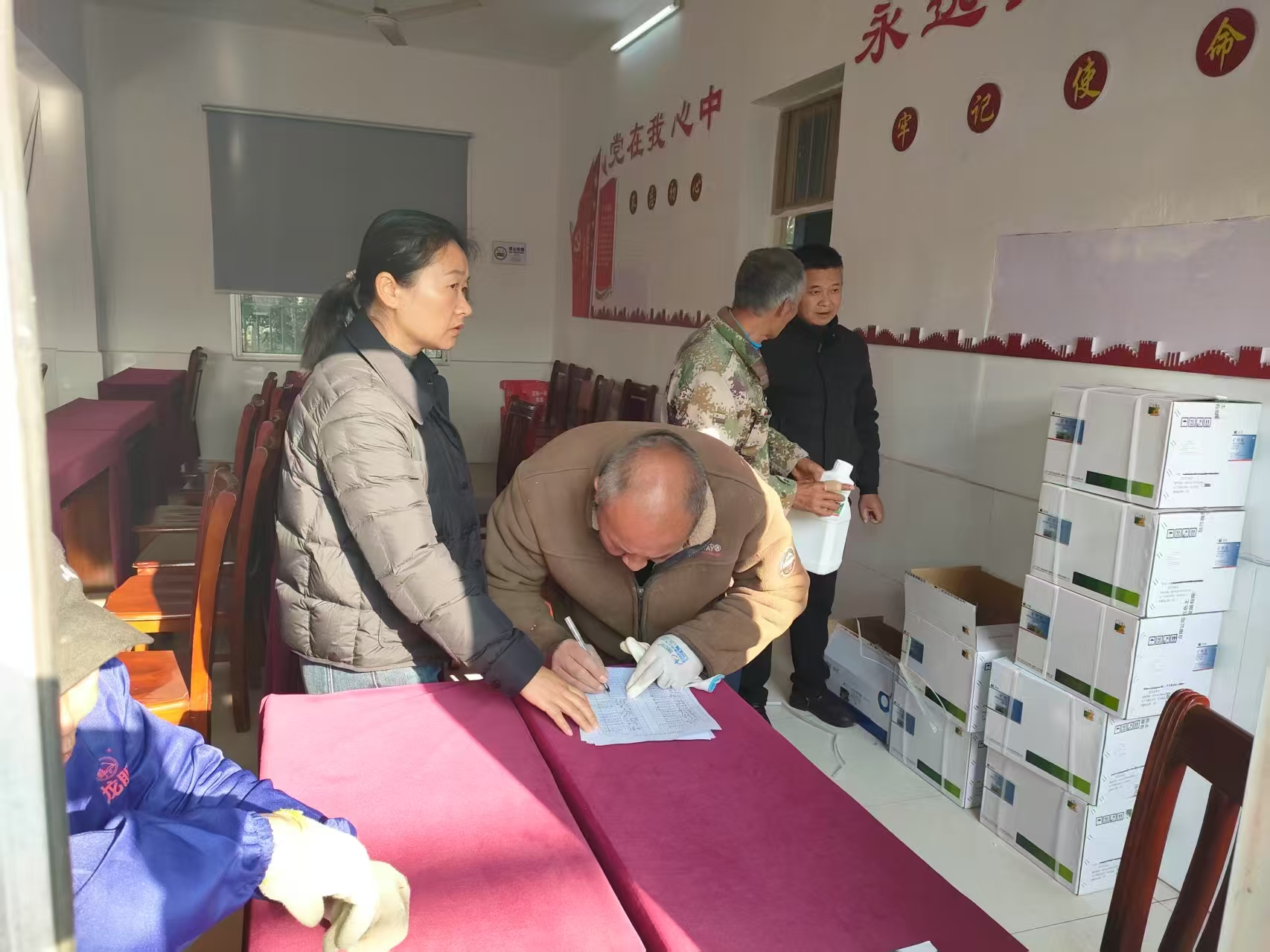 政策宣讲结束后,镇驻村干部聚焦柑橘产业稳产增收关键问题,开展柑橘木虱防控专题培训。培训中详细讲解柑橘木虱的危害特点,明确柑橘木虱作为柑橘黄龙病唯一自然传播媒介,不仅会导致新梢萎缩、叶片畸形,更会引发毁灭性黄龙病,直接影响柑橘产量和品质。同时围绕农业防治、物理防治、化学防治等综合防控措施展开细致讲解,现场为村民发放防治药水 60 套,手把手指导大家掌握科学用药方法和施药注意事项,确保防控技术落地见效。