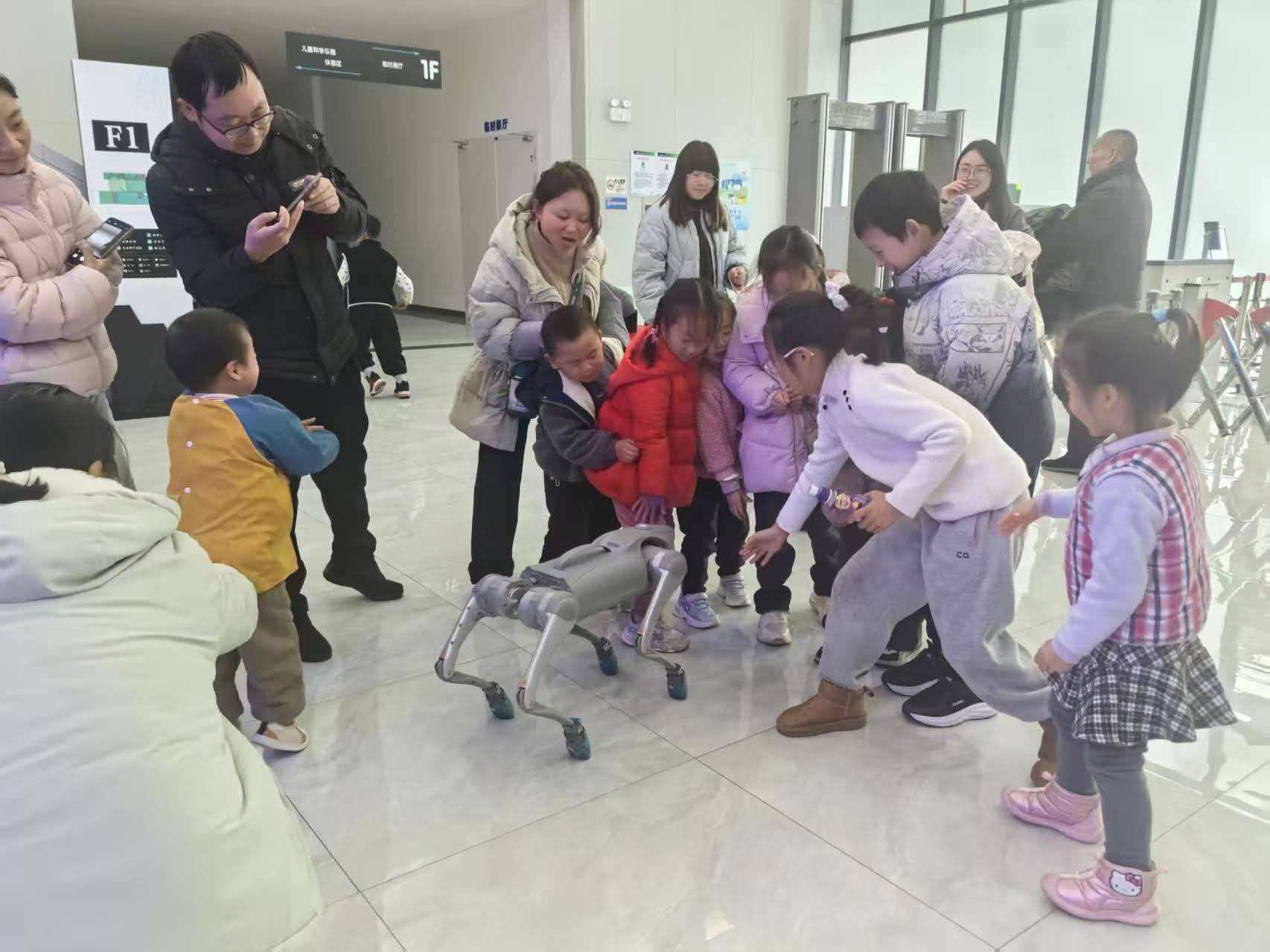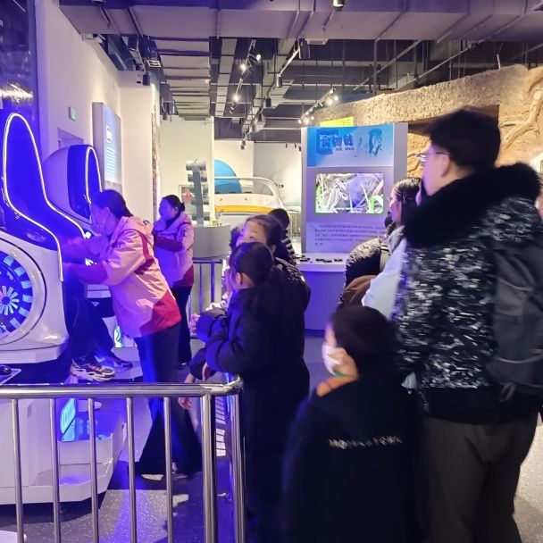 科技馆一楼大厅的机器狗表演人气爆棚,银灰色四足机器狗灵活穿梭,跳跃、翻滚等动作流畅自然。在工作人员指令下,它眨着LED“眼睛”作揖、摇尾巴,憨态可掬的模样引得孩子们哈哈大笑。家长们纷纷记录这一时刻,表演既展示了人工智能的精妙,也激发了孩子们对科技的浓厚兴趣。