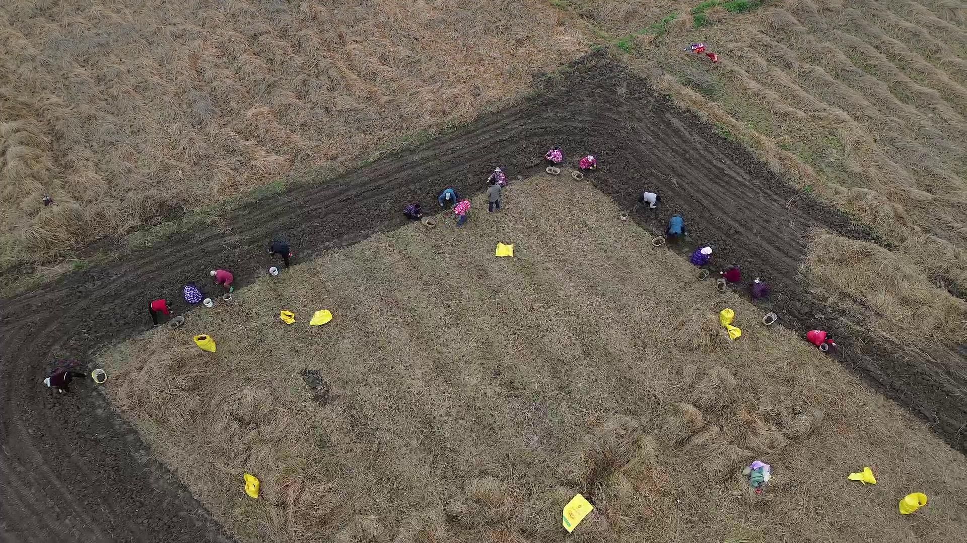在问安镇的马蹄种植基地里,挖掘机在田间来回作业,疏松土壤、翻起泥块。紧随其后的工人们弯腰俯身,动作麻利地从松软的泥土中捡拾出一颗颗饱满乌亮的马蹄。新采的马蹄被迅速装筐、转运,直接送往合作社进行加工。