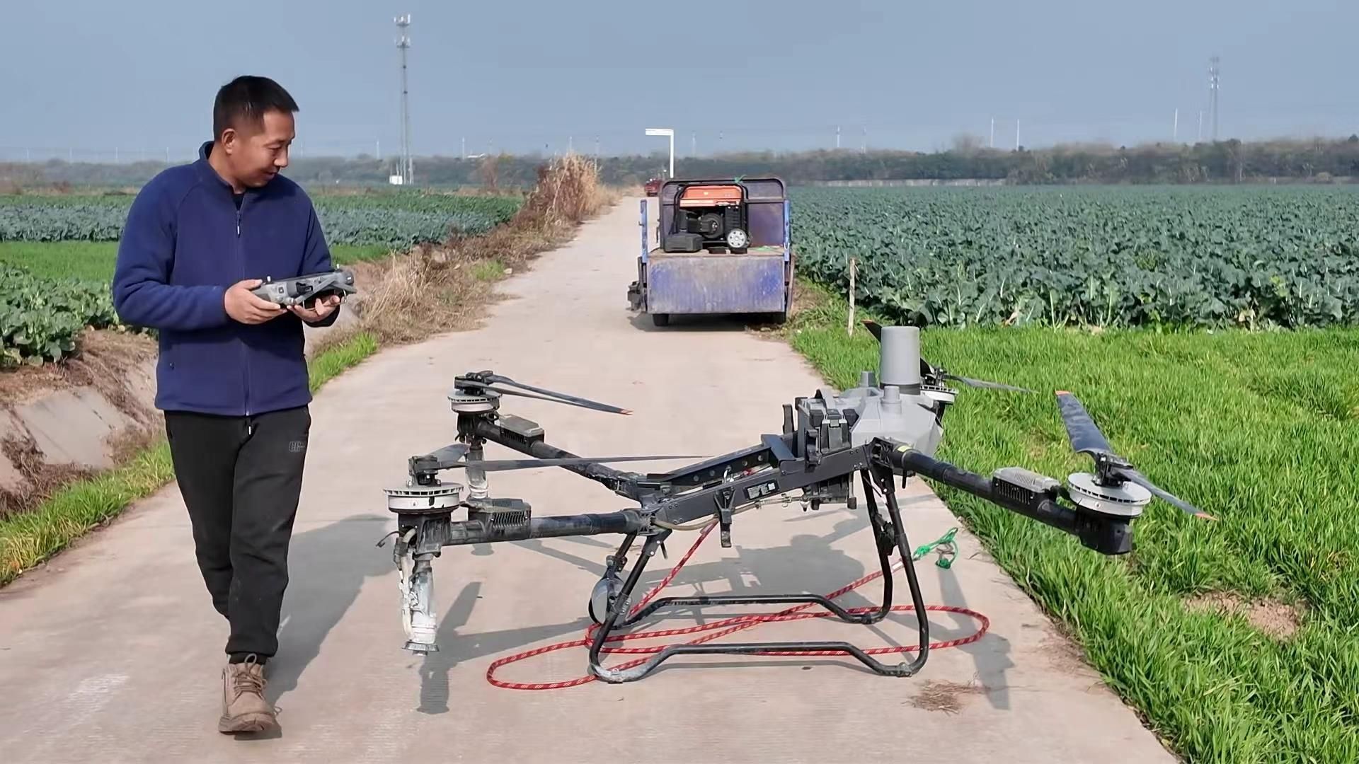 阮露林正在操作合作社的大型农用无人机
