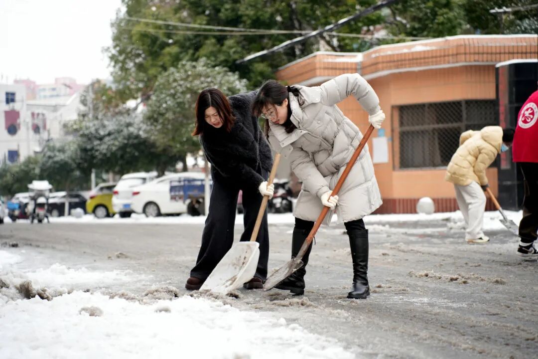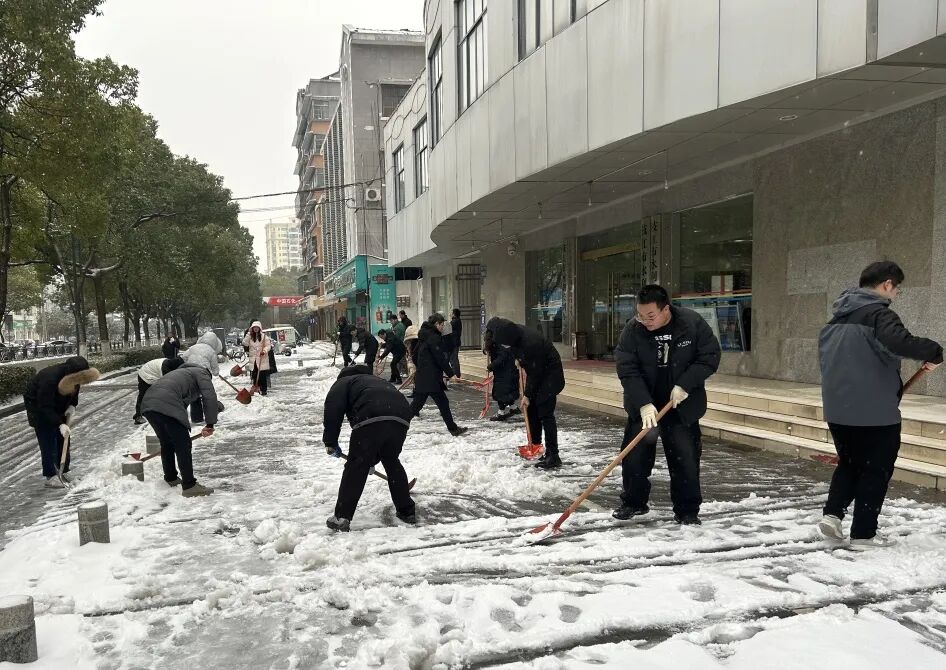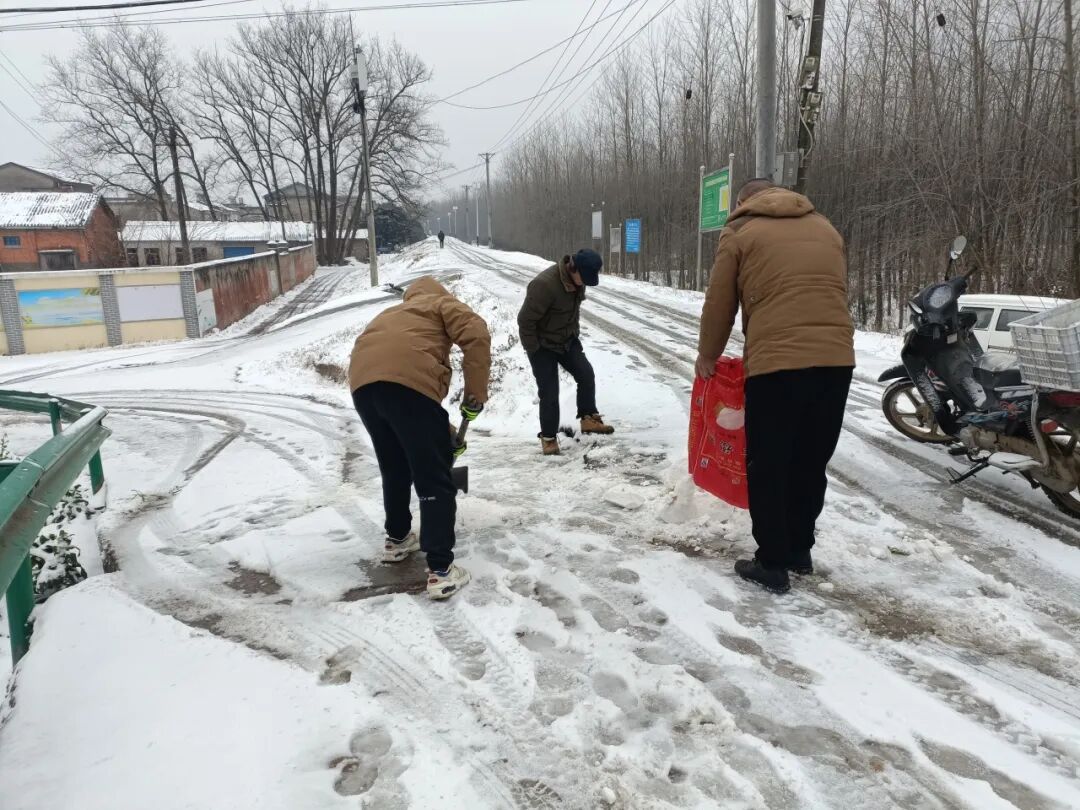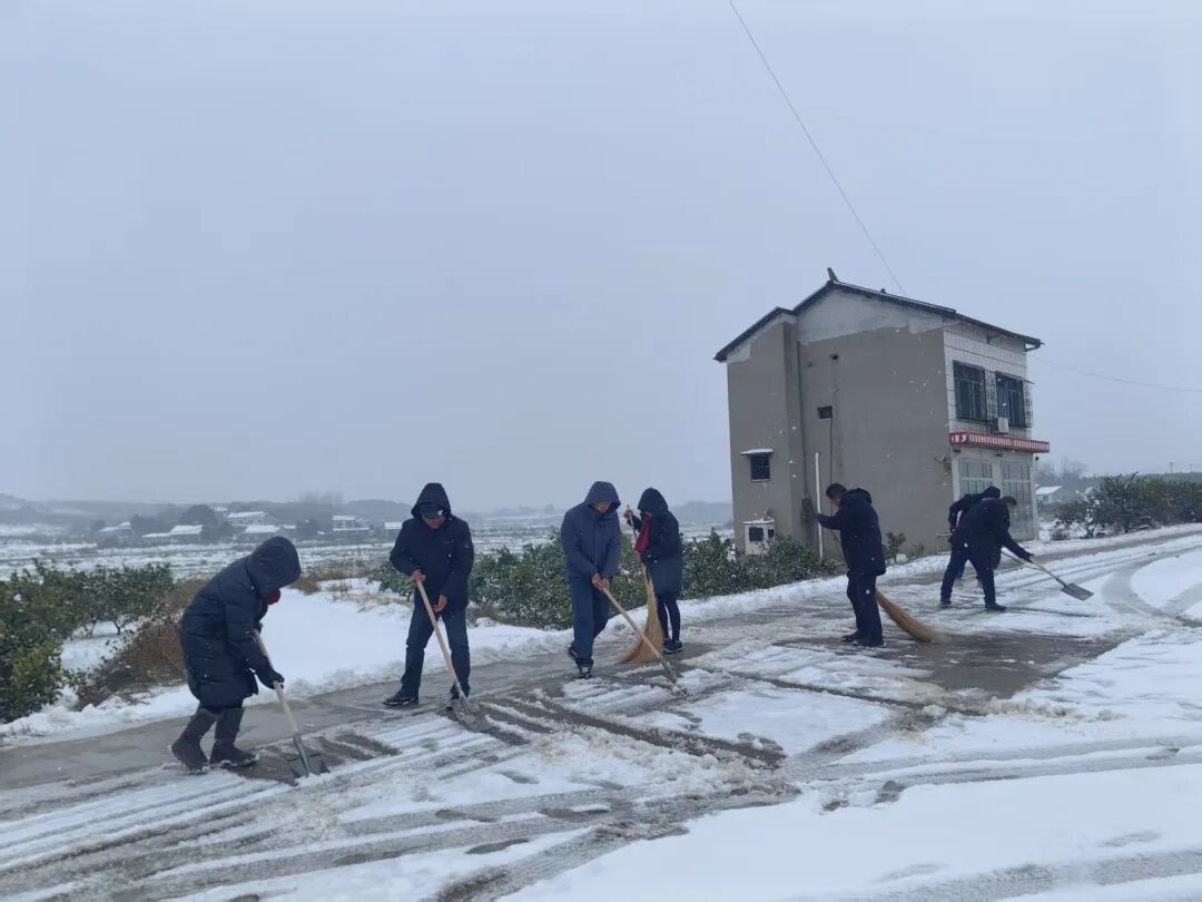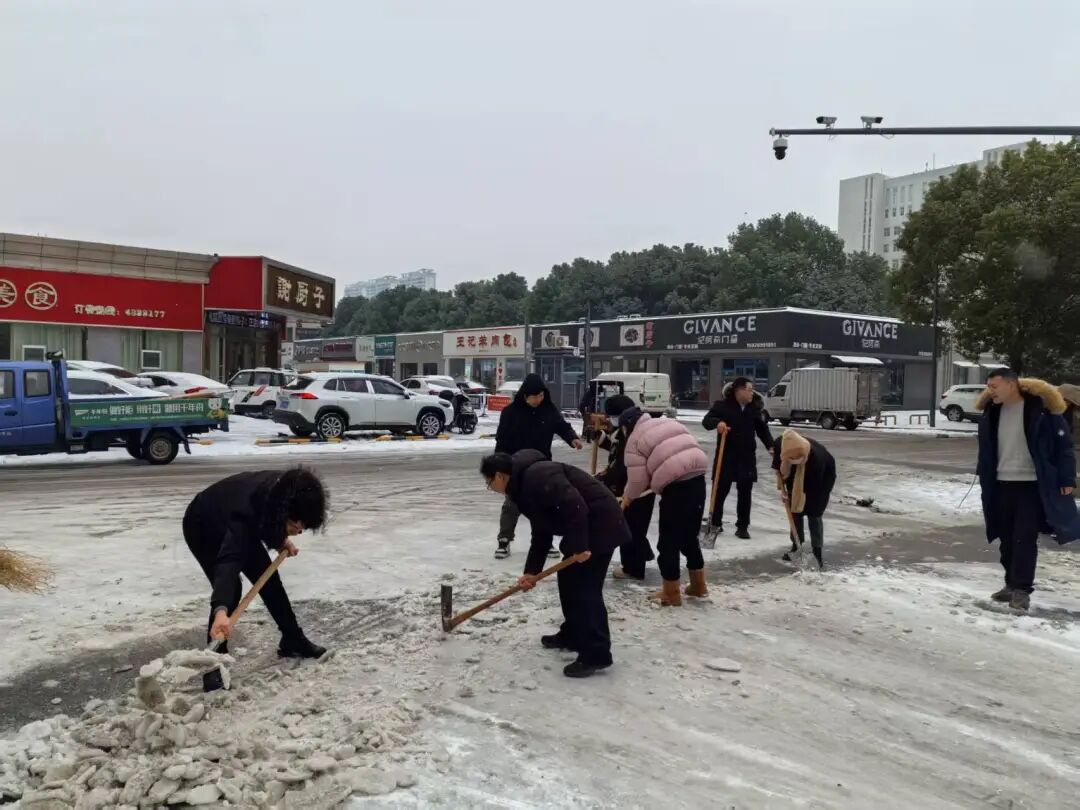 1月20日凌晨,董市镇迅速组织镇村党员干部积极开展除雪除冰工作,采取“人工+机械”的方式,全力以赴保障广大群众正常生产生活秩序和生命财产安全。与此同时,各村(社区)开展特殊人群敲门行动和农业安全检查,通过微信群、村村响等方式及时发布天气预警信息,加强宣传引导,提醒群众做好个人安全防护措施。