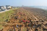 枝江江滩再添3000株新绿!