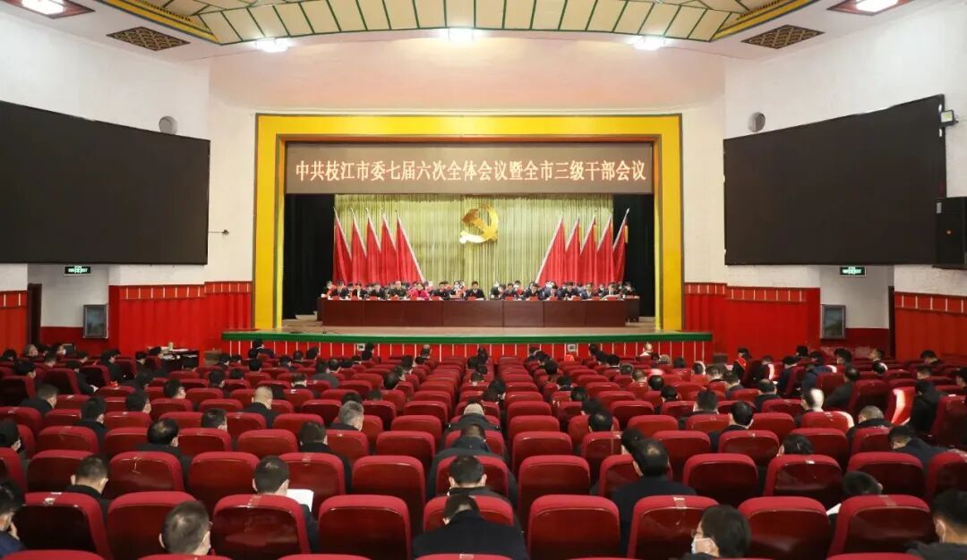 枝江融媒(记者 谢逸舟 方伟)1月30日,中共枝江市委七届六次全会暨全市三级干部会议在枝江大礼堂举行。全会强调,全市上下要深入贯彻落实党中央决策部署和省委、宜昌市委工作要求,拿出“开局就是决战,起步就是冲刺”的决心和行动,先想一步、先干一步、领先一步,鼓足干劲、争分夺秒、大干快上,加快建设“四个枝江”,奋力争当“三个示范区”,为全省奋力谱写全面建设社会主义现代化国家荆楚篇章贡献更大枝江力量。