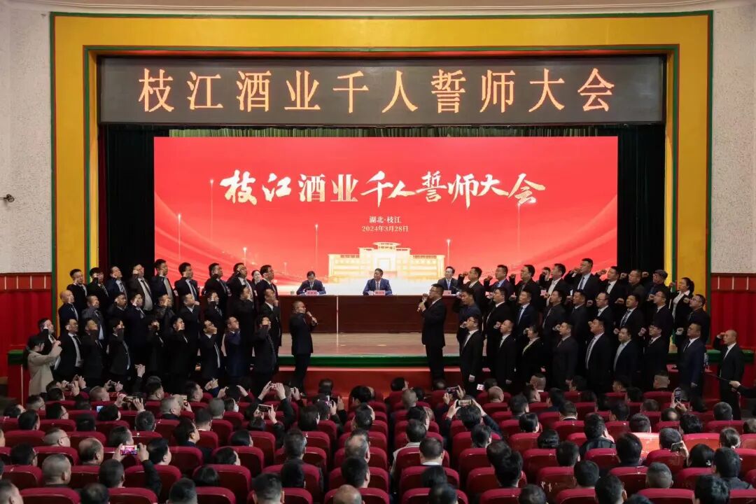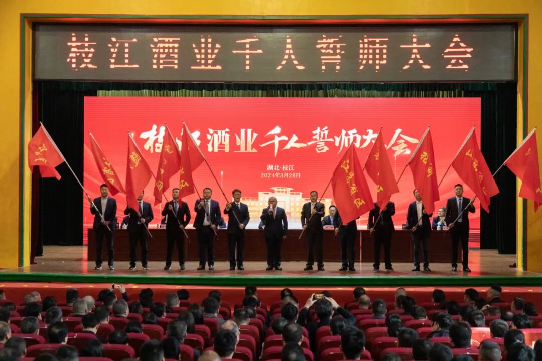 会上,枝江酒业技术团队、销售团队分别进行集体宣誓,枝江酒业品质管理、销售代表、经销商代表分别作表态发言。会议还举行了区代表授旗仪式。