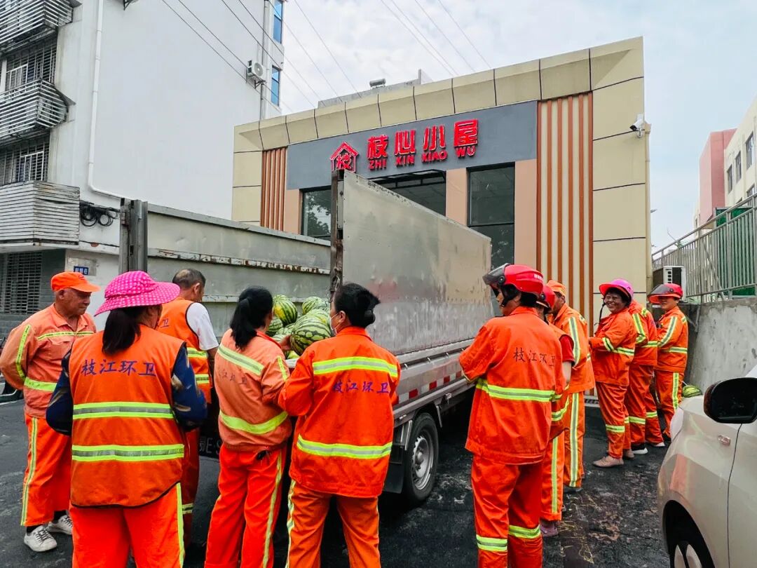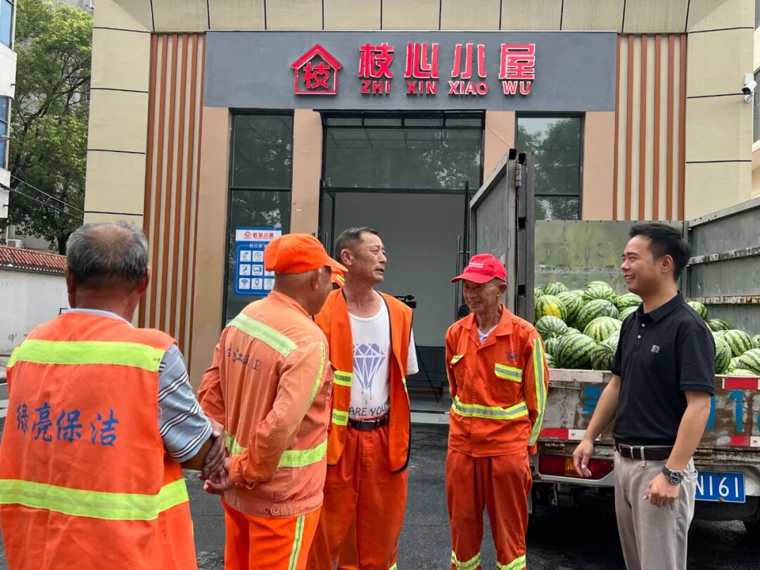 “看到环卫工人头顶烈日,不畏辛劳,在最脏、最苦、最累的岗位上默默奉献,就想着力所能及地做一些事情,表达对他们的感谢。为了让这些辛勤工作的环卫工人也能在这个夏天感受到一丝清凉,所以决定专门采购一批西瓜赠送给环卫工人。”枝江市永兴装饰有限公司负责人罗成说道。据悉,在枝江市范围内共有84个工会驿站,主要分布在市内的各大商圈、市场、社区、环卫站、客运站、公园和加油站等场所,在炎热的夏日里,为高温中坚守岗位的劳动者撑起“遮阳伞”,送上一份清凉。
