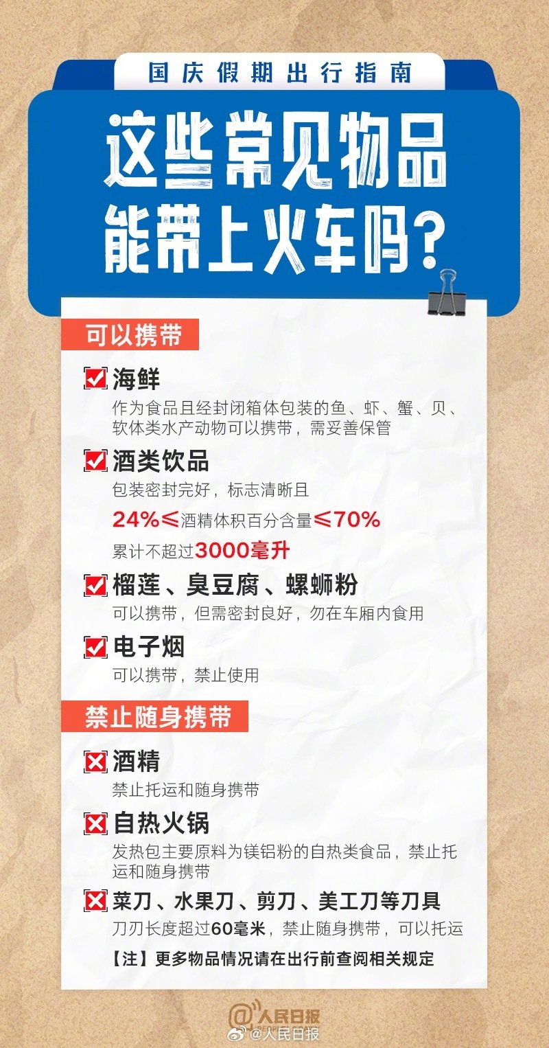 国庆假期将至,你有出行计划吗?哪些东西不能带上火车飞机?坐火车坐飞机忘带身份证怎么办?开车后改签车票、“车内换座”,坐火车出行有哪些新变化?