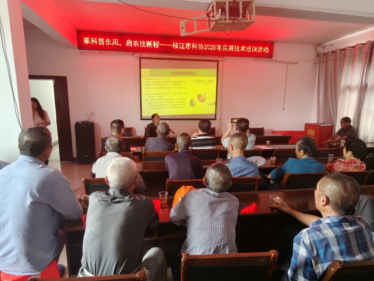 枝江融媒(通讯员 孟亚平 张翠玲)9月11日上午,借助枝江市2025年“全国科普月”活动契机,市科协邀请宜昌市农科院专家团队走进顾家店镇清水溪村,为当地柑橘种植户带来一场内容精准、实用性强的科普技术培训,真正让科技为柑橘产业注入新动力。