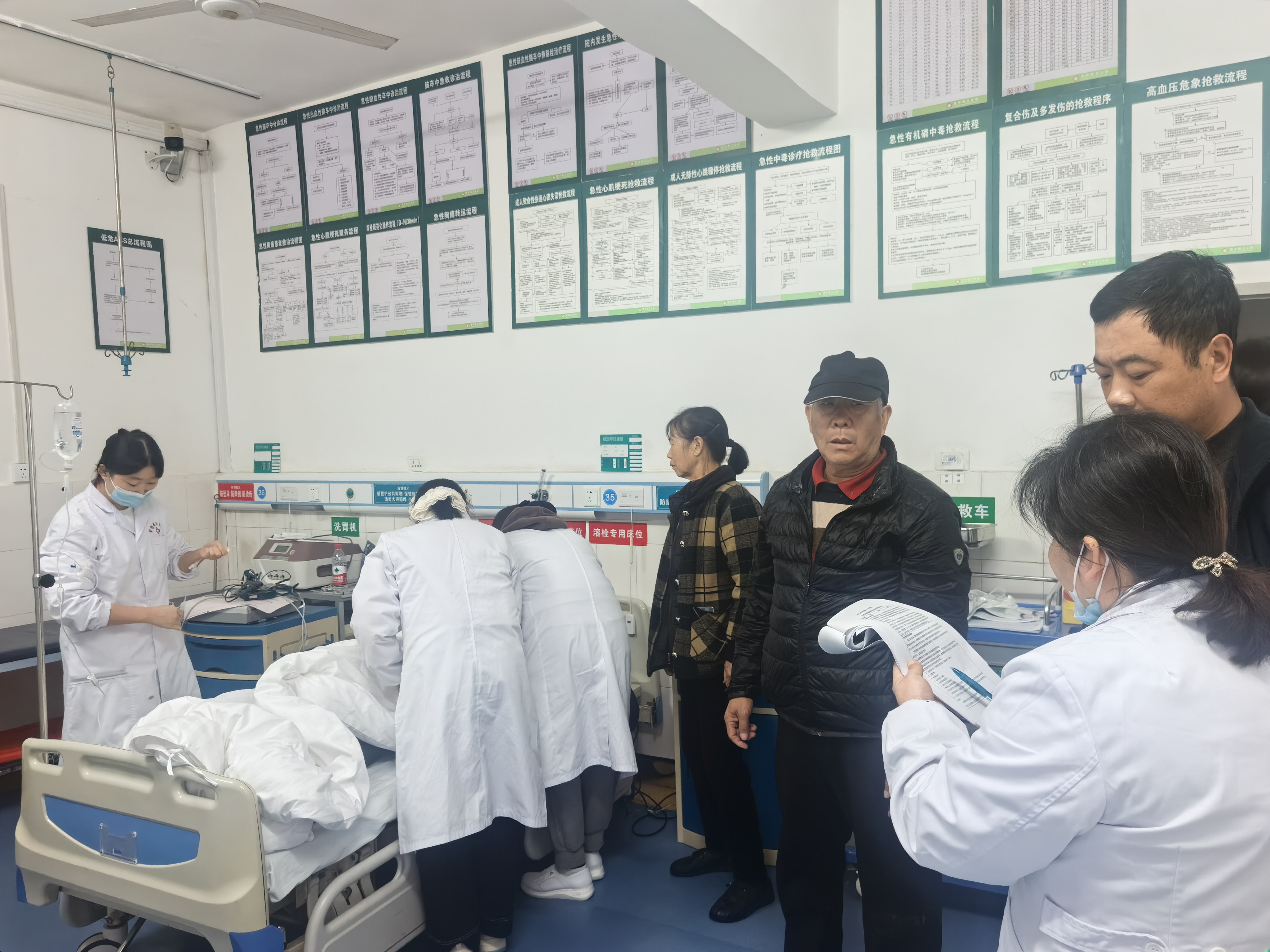 首先入院的是一名老年男性患者,因突发剧烈胸痛被紧急送医。医院急救团队第一时间启动了“胸痛溶栓流程”:住院部内科主任易蓉迅速评估心电图,确诊为高危胸痛,护士长张流燕遵医嘱同步完成静脉穿刺和给药准备,住院部主治医师李吉林同时与家属沟通谈话联系市120急救中心做好转运准备工作。在10分钟内,溶栓药物精准注入,有效缓解了心肌缺血。此举不仅避免了患者心功能恶化,还为后续转院赢得了宝贵时间。最终,患者通过该院绿色通道,安全送达上级医院进行下一步干预。