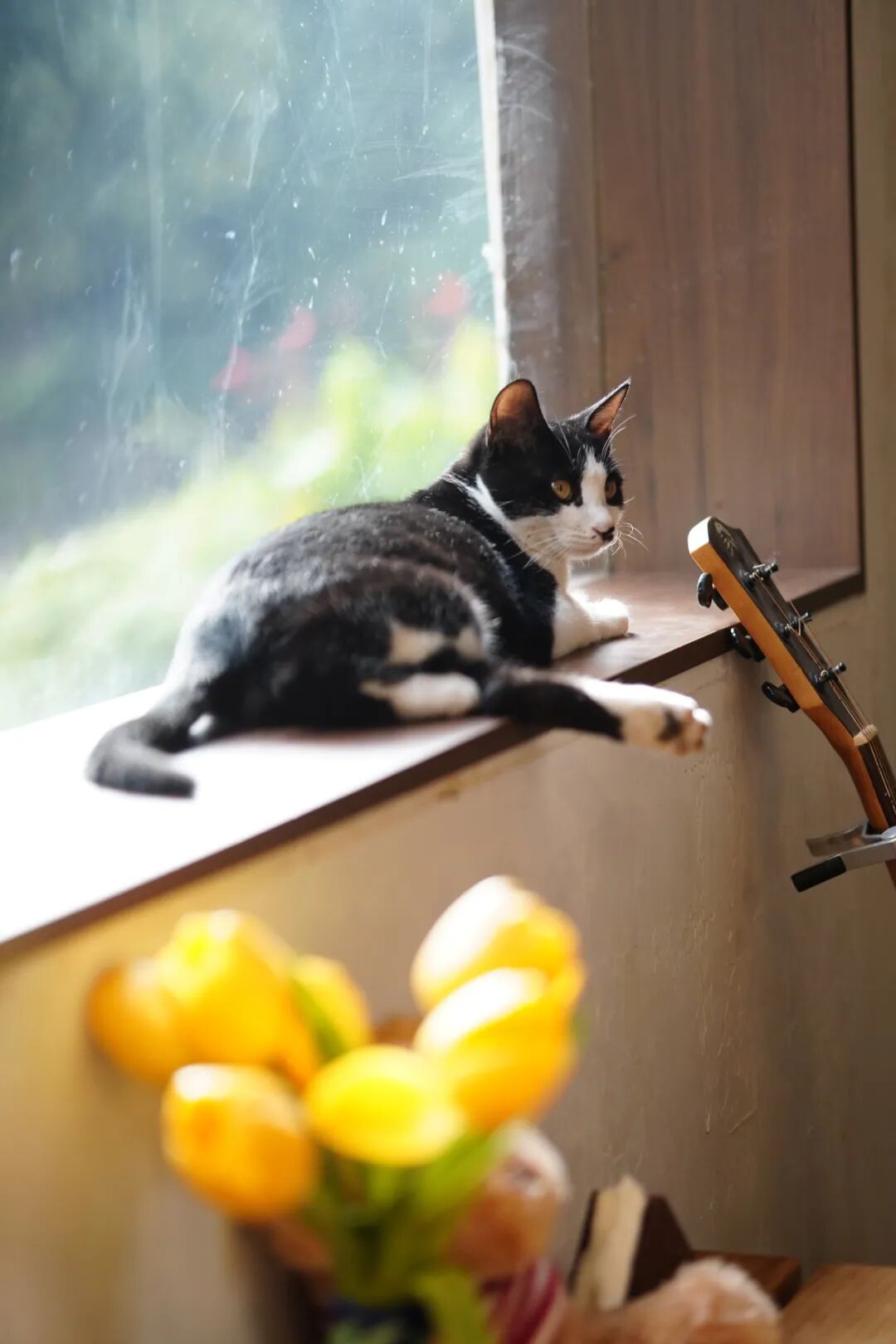 子初小朋友是屋顶咖啡的常客,每次跟着妈妈来,都要围着小咪转,稚嫩的笑声在店里回荡;00后姑娘饶方怡和邓美芳,常化着精致的妆、带着相机来,店里的窗台、天台,都是她们的摄影棚,定格下属于青春的鲜活;还有不少人带着宠物来,大家围坐在一起,聊宠物、聊生活,分享彼此的故事,原本陌生的人,因为这间小店慢慢熟络起来。