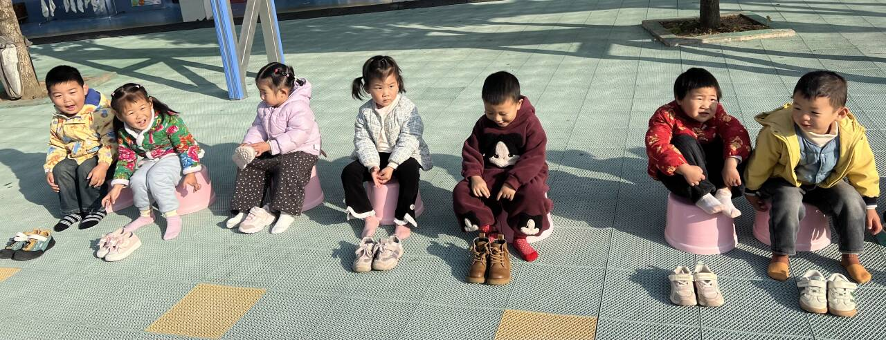 竞赛按年龄分层设计任务:小班比赛穿鞋子、舀豆豆、穿花生豆;中班挑战穿外套、叠毛巾、剥桔子;大班专注扣扣子叠外套、筷子夹花生、剥鸡蛋壳。孩子们个个精神抖擞、斗志昂扬。“开始!”随着主持人老师一声令下,孩子们迅速投入“战斗”。孩子们在限时比拼中动作利落,现场既充满紧张的竞技感,又洋溢着欢声笑语。