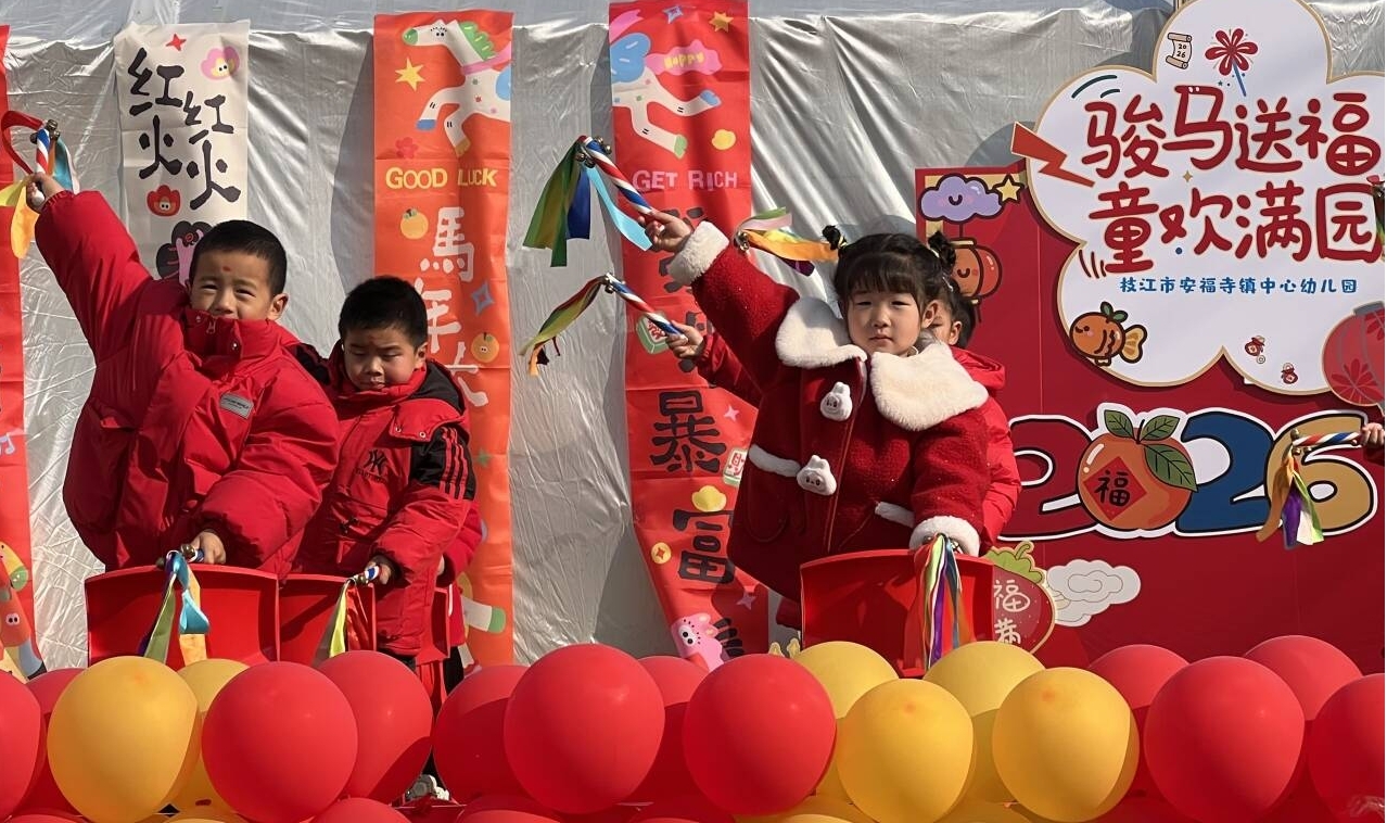 枝江融媒(通讯员 石佳 王香莲)元旦到来之际,12月26日,安福寺镇中心幼儿园以“骏马送福,童欢满园”为主题,在园区操场开展了一场融合民俗趣味与亲子温情的元旦活动,全园师幼与家长齐聚一堂,在欢声笑语中迎接新年。