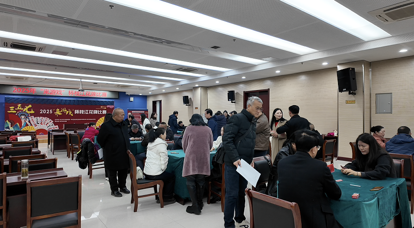 比赛现场氛围紧张而热烈,选手们围坐桌前,洗牌、摸牌、出牌一气呵成。大家凝神专注、运筹帷幄,在牌局的明暗交锋中斗智斗勇,每一次出牌都暗藏巧思。经过多轮激烈角逐,选手们凭借扎实的功底和灵活的策略分出高下,充分展现了枝江花牌的智力趣味与竞技魅力。