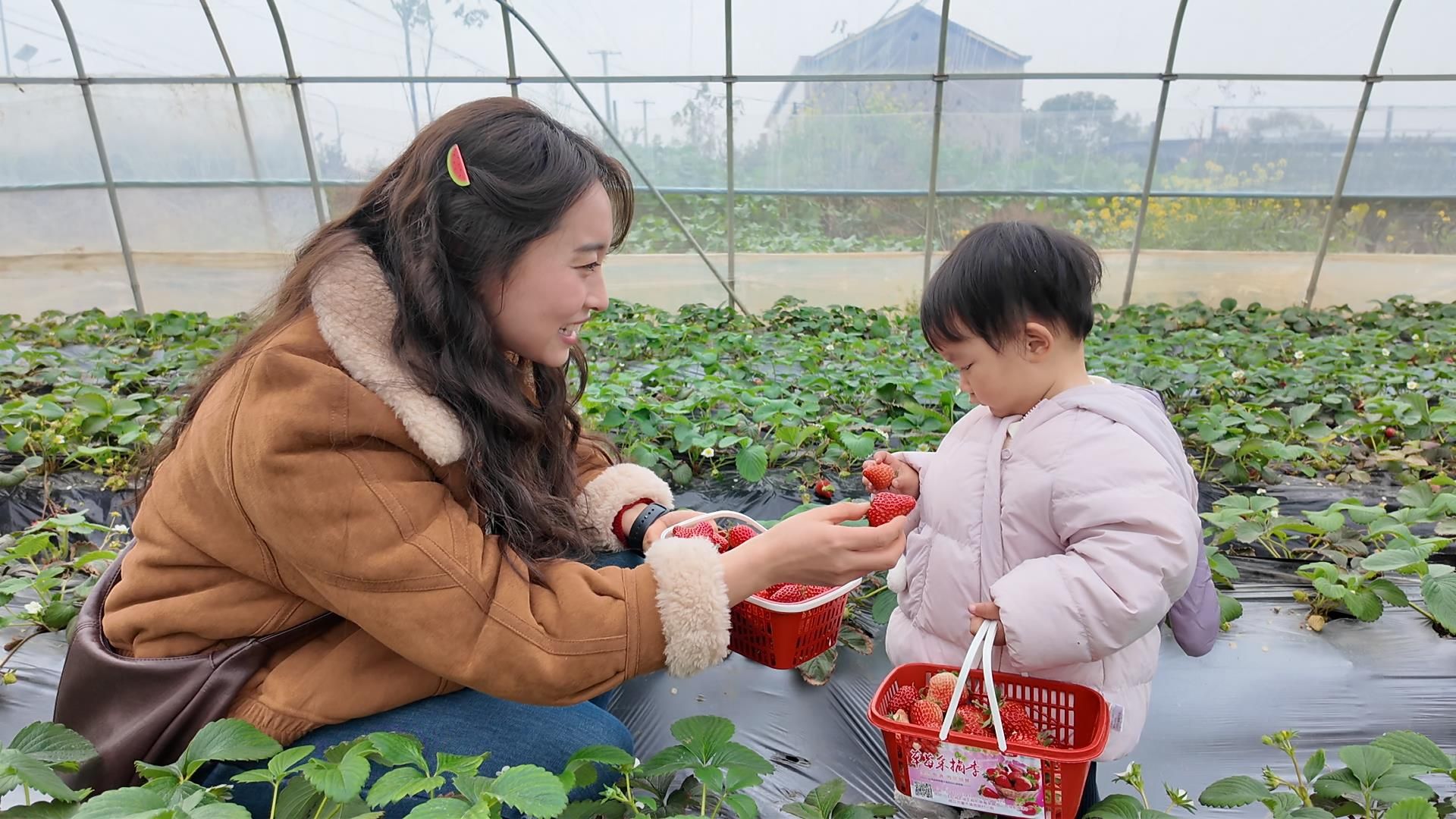 “我是经朋友推荐来这儿的,他家的红颜草莓非常正宗,香味正、甜味足,这几年我一直都在这儿买。”游客詹倩莹一边采摘一边分享着自己的体验,“自己采摘蛮有意思,能挑选最合心意的,也很新鲜。孩子特别喜欢这个过程,是个很好的亲子体验。”