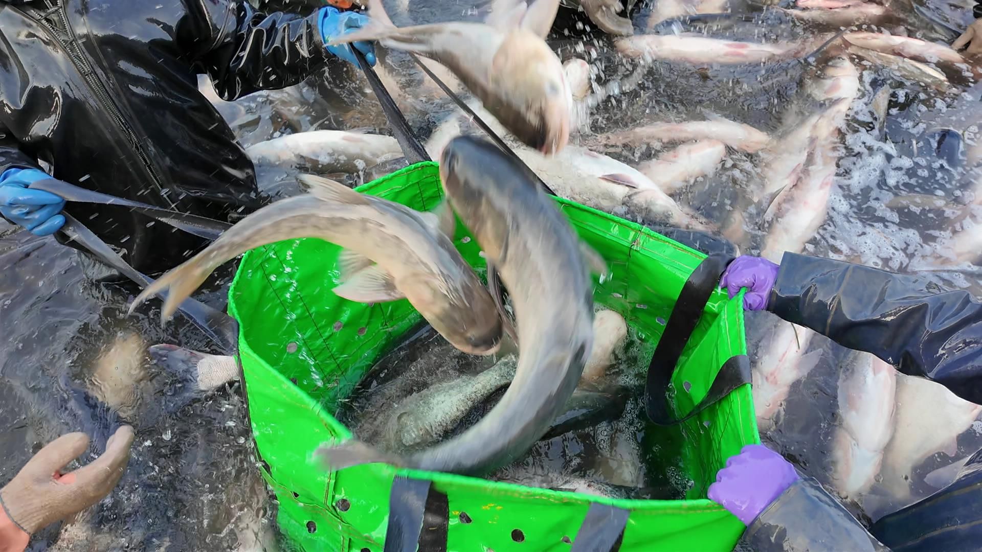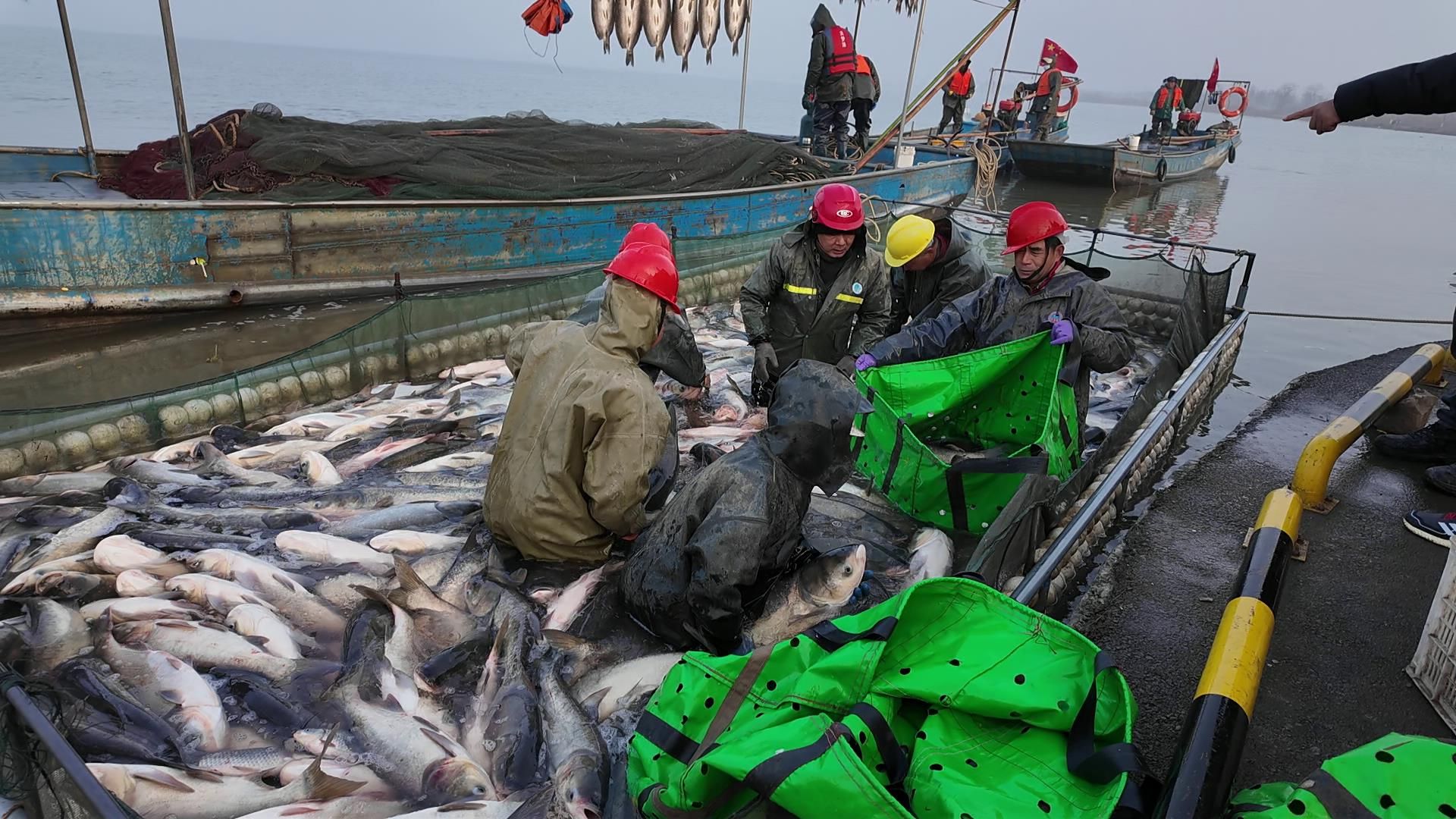 “我是襄阳过来的,金湖的生态鱼品质好、个头大,还是纯天然的,外地朋友都喜欢吃,我们在这一天能弄十几万斤。”捕捞队队长王道红说道。