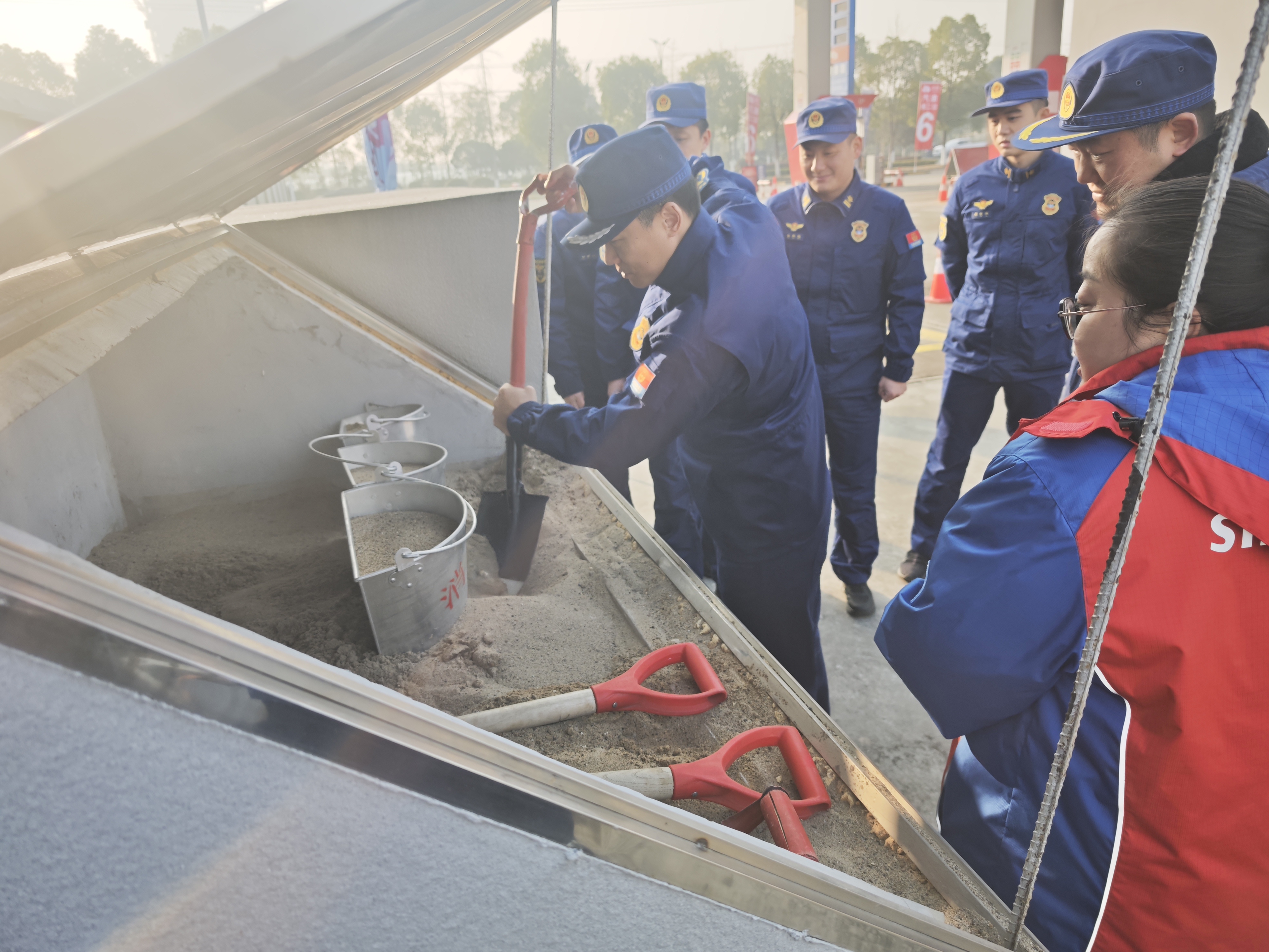 期间,大队监督员带领队站指战员与加油站负责人进行深入交流,详细询问并记录场所基本布局、危化品储存规范、日常消防安全管理制度落实等关键信息,实地检查加油站油罐区、加油区、配电室等重点部位,认真核查消防设施器材的配置标准、维护保养及运行状态,对发现的隐患现场提出整改建议。结合加油站易燃易爆的场所特性,大队监督员以“理论讲解+现场示范”的形式,向队站指战员和加油站工作人员系统讲授火灾隐患排查要点,重点围绕危化品泄漏初期处置、火灾事故应急响应流程、人员疏散逃生技巧等内容进行细致解读。