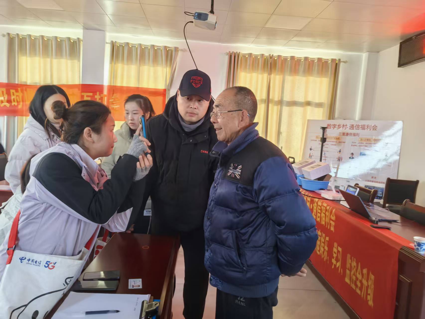 活动前期,社区通过入户走访和线上“一家人”居民群广泛宣传,得到居民热烈响应。会上,电信工作人员详细介绍了“数字乡村”便民服务体系:通过平台可实现村里重要消息实时推送至村民手机,公共区域监控画面也可随时查看,助力乡村治理与安全守护;“乡情网”让加入群组的电信用户互拨免费,畅联乡音亲情;此外,还提供上门网络优化、线路检测等贴心服务,并现场推介了多项惠民通信产品。