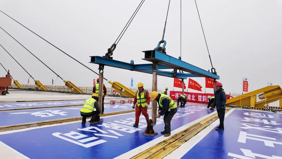 枝江融媒(记者 金秋 汪桔 朱深耕 严心怡)1月18日上午,随着最后一块预制桥面板精准吊装到位,当枝松高速公路控制性工程——松滋河特大桥顺利合龙 。