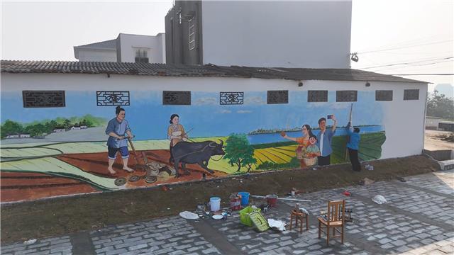 近日,记者走进项目现场,施工队正在进行房屋外院墙修整和景墙绘制等工作,现场井然有序。