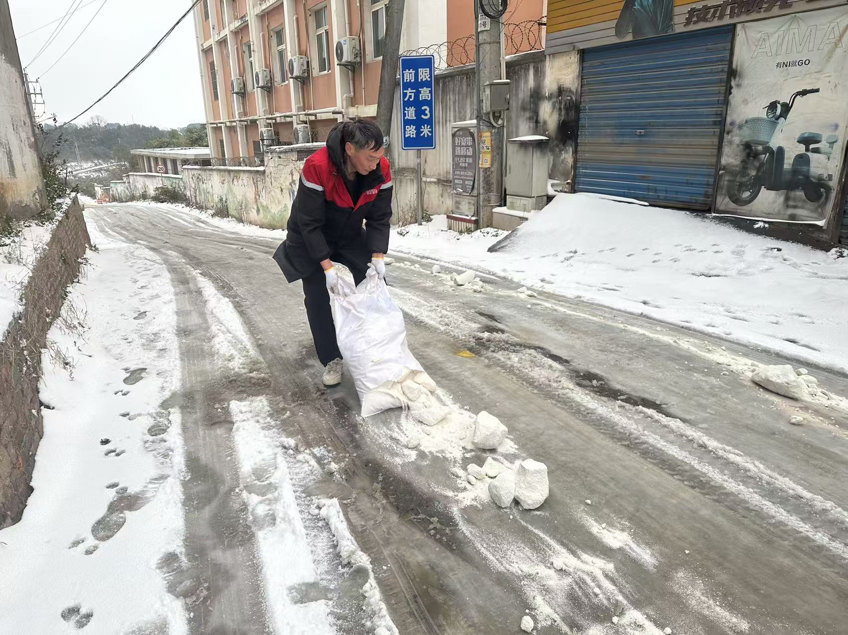 枝江融媒(通讯员 张翠玲)1月19日,枝江市迎来2026年第一场降雪。顾家店镇清水溪村以雪为令、迅速响应,第一时间组织村组干部、党员及热心群众,对村内主干道路、桥梁、陡坡及公共场所的积雪进行清理,并在重点区域实施撒盐除冰作业,全力保障村民安全出行与正常生活秩序。