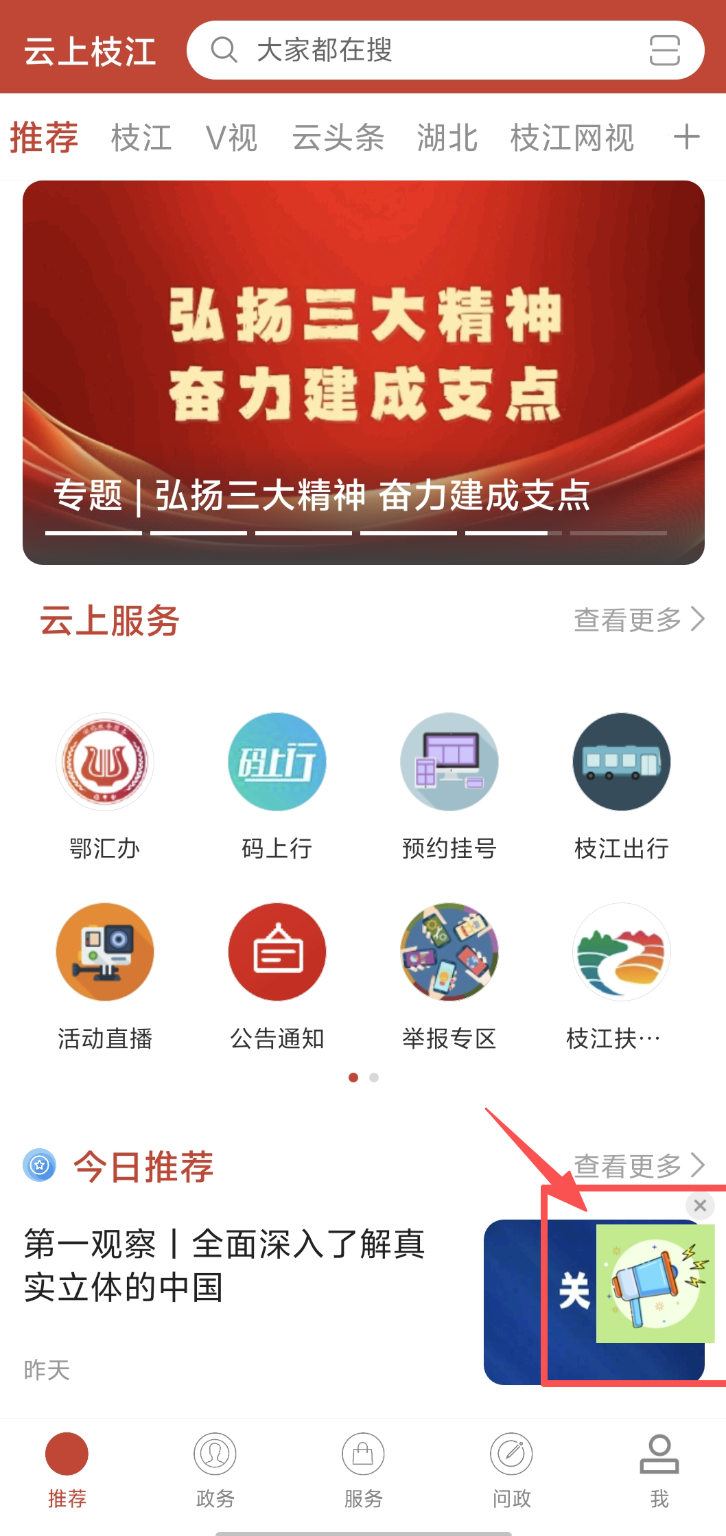 1.打开云上枝江APP,选择悬浮图标投稿专栏。