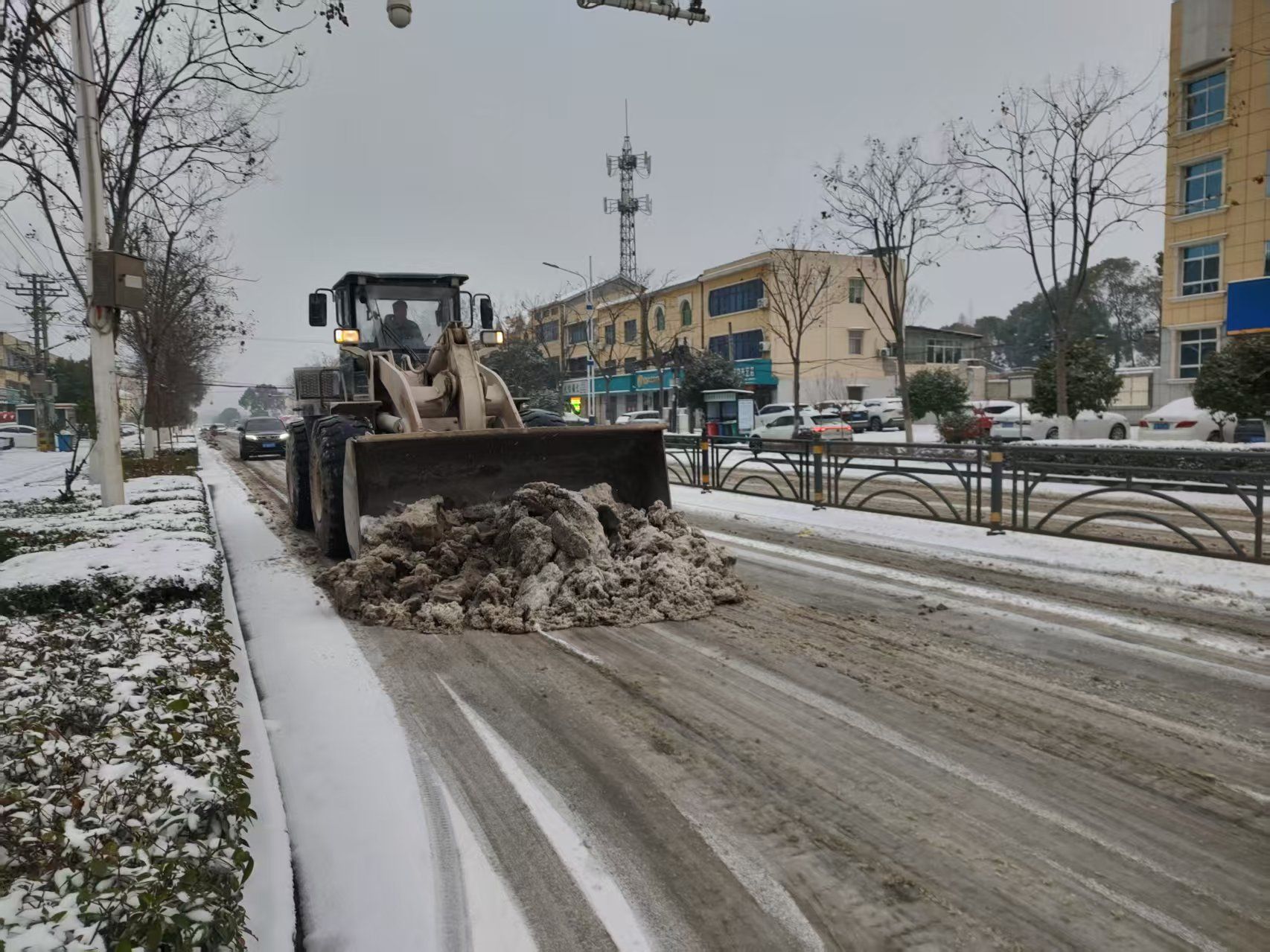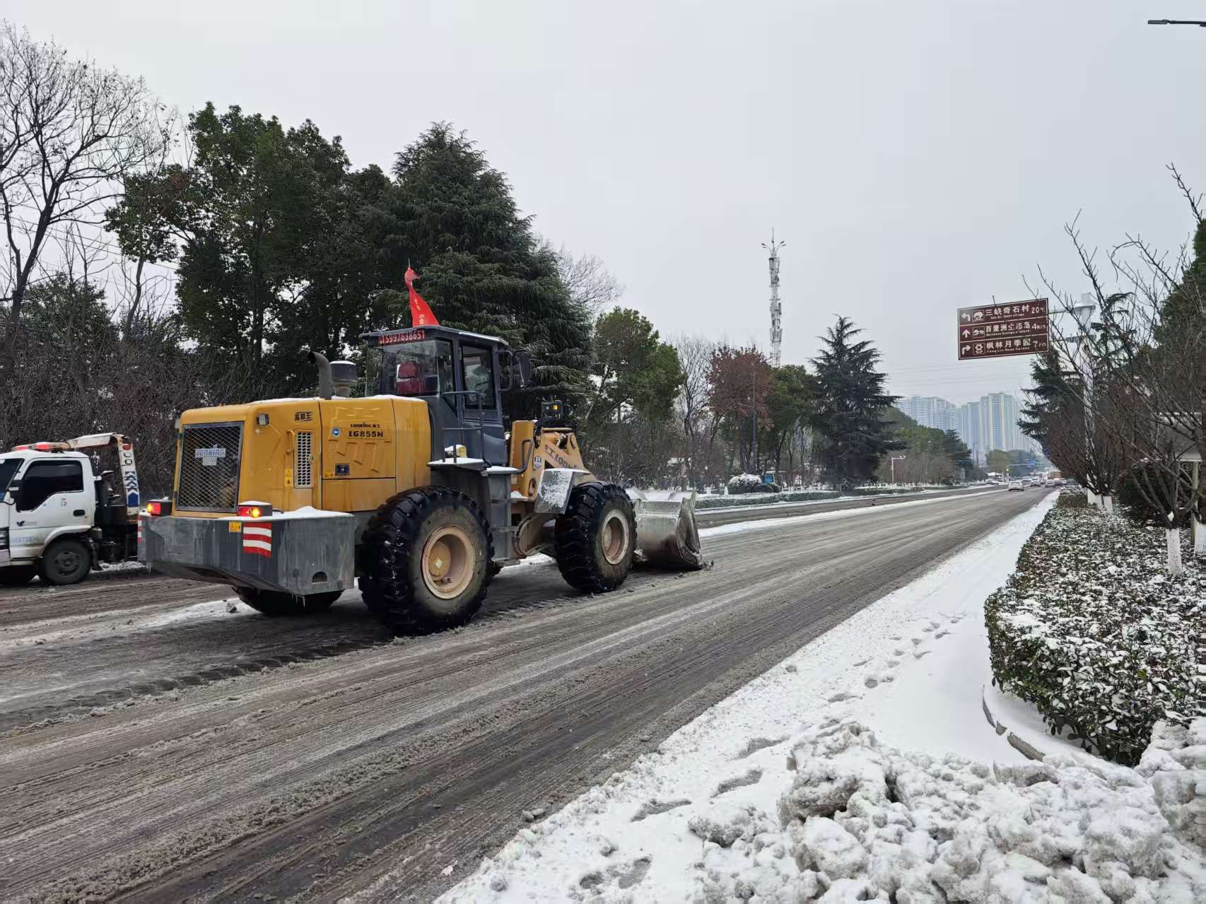 港化集团主动延伸服务触角,聚焦东部产业新区出行保障,积极对接顾家店镇政府需求,调派铲车等专业机械设备投入镇区主干道路除雪融冰工作。作业中重点攻坚镇区交通要道、学校周边、商超及居民密集区等关键路段,高效开展积雪清扫、冰层破除作业,打通乡镇交通及225省道雅澧线循环“大动脉”。此次行动累计完成25公里道路除雪融冰任务,有效保障了道路通行安全与群众日常出行。