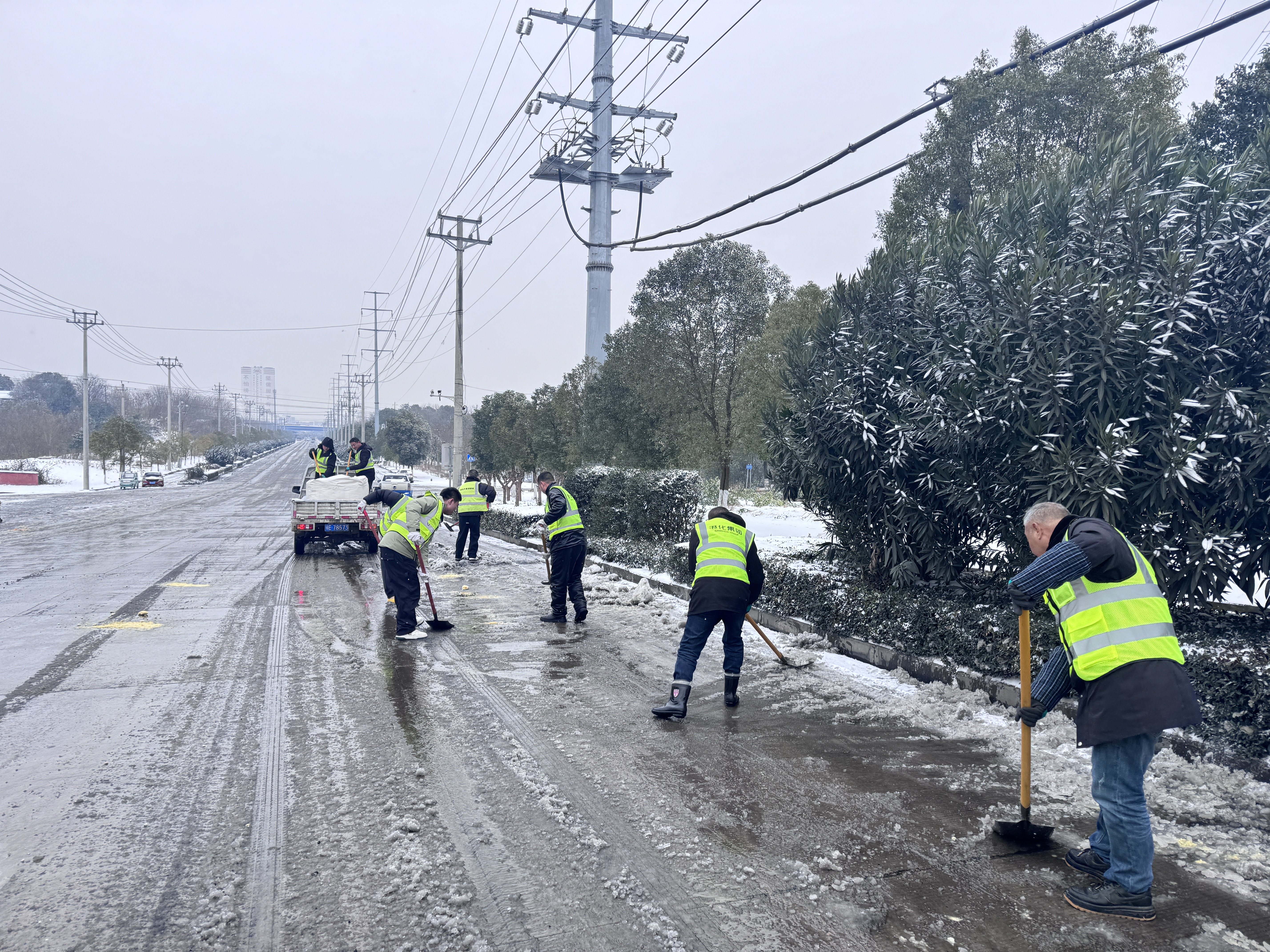 目前,除雪融冰各项工作仍在有序推进。港化集团将持续密切关注天气变化,进一步强化统筹调度,压实工作责任,细化防控举措,坚决筑牢低温雨雪冰冻天气安全防线,全力保障园区生产运营安全、城市基础设施平稳运行及市民出行畅通。