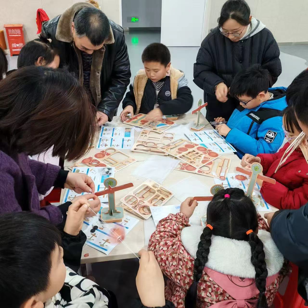 在动手实践中,孩子们化身为“科学小工匠”。他们以拼装板为基、小木棍为杆,绳子为络、棋子为码,再借助钉子与轴套,一步步搭建起自己的天平。在老师的指导下,孩子们裁剪材料、组装部件、调试结构,每一次拼接与调整,都是对杠杆原理的实践与平衡的摸索。当孩子们把黑白棋子放上自制天平,看着托盘起伏后归于平衡,孩子们眼中满是惊喜,曾经晦涩的杠杆原理,如今化作了手中“平衡魔。