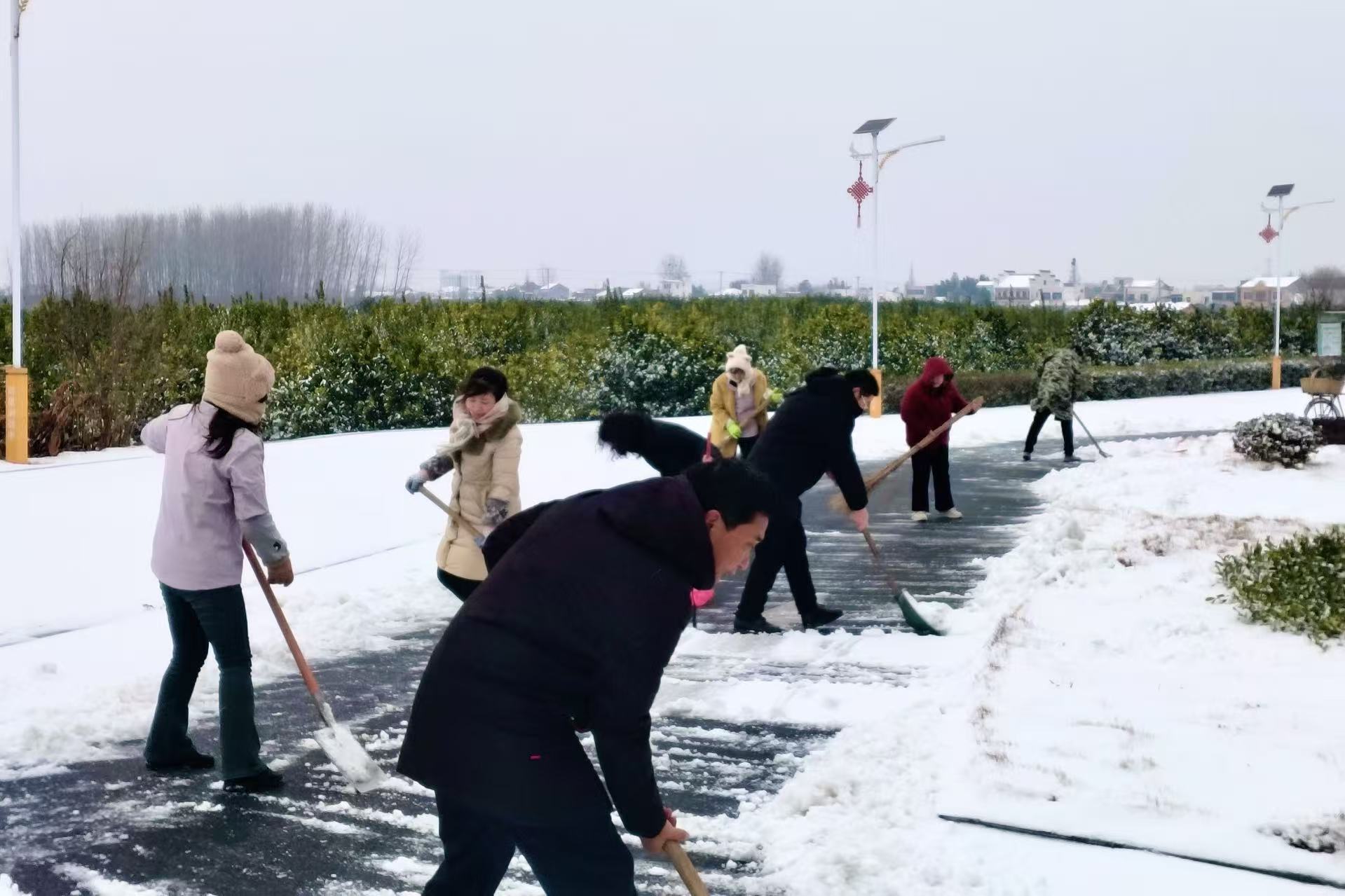 多方联动聚合力,全员上阵战风雪。百里洲镇累计动员机关、各村(社区)党员干部群众800余人,聚焦集镇主次干道、村道、渡口、桥梁等关键区域,开展集中清雪除冰作业。大家顶风冒雪、分工协作,挥锹铲雪、撒布融雪剂,用实干打通 “出行安全路”。