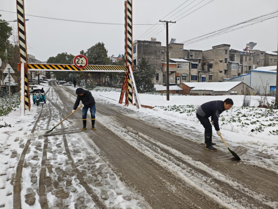 一大早,工作人员就带着铁锹、扫把等工具,将主干道、桥梁陡坡及家属区出口陡坡等交通安全隐患点作为重点清理区域,对这些区域进行铲雪清障作业。同时,为了快速有效地消除路面结冰隐患,还撒布了融雪剂。经过大家的努力,一条条“安全通道”逐渐在社区中开辟出来,大大降低了居民滑倒摔伤的风险,保障了居民的出行畅通。