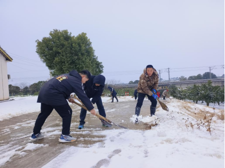 严寒中,大家携带铁锹、扫帚,调配融雪用盐,明确分工,配合默契。有的沿途撒盐加速融化,有的奋力挥锹铲除坚冰,有的清扫残雪,忙碌的身影构成了一道温暖而亮丽的风景线。