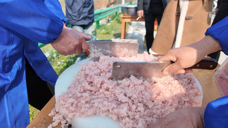伴随着刀具的起落声,师傅们动作娴熟、一气呵成:现杀、剔骨、去皮、采肉,每一个步骤都尽显功底。随后,新鲜鱼肉经过反复漂洗、脱水,再按照世代相传的配方,加入土鸡蛋、猪油等辅料,手工剁茸、用力搅打,直至鱼茸细腻起胶、富有弹性,才小心装入模具,入笼蒸制。