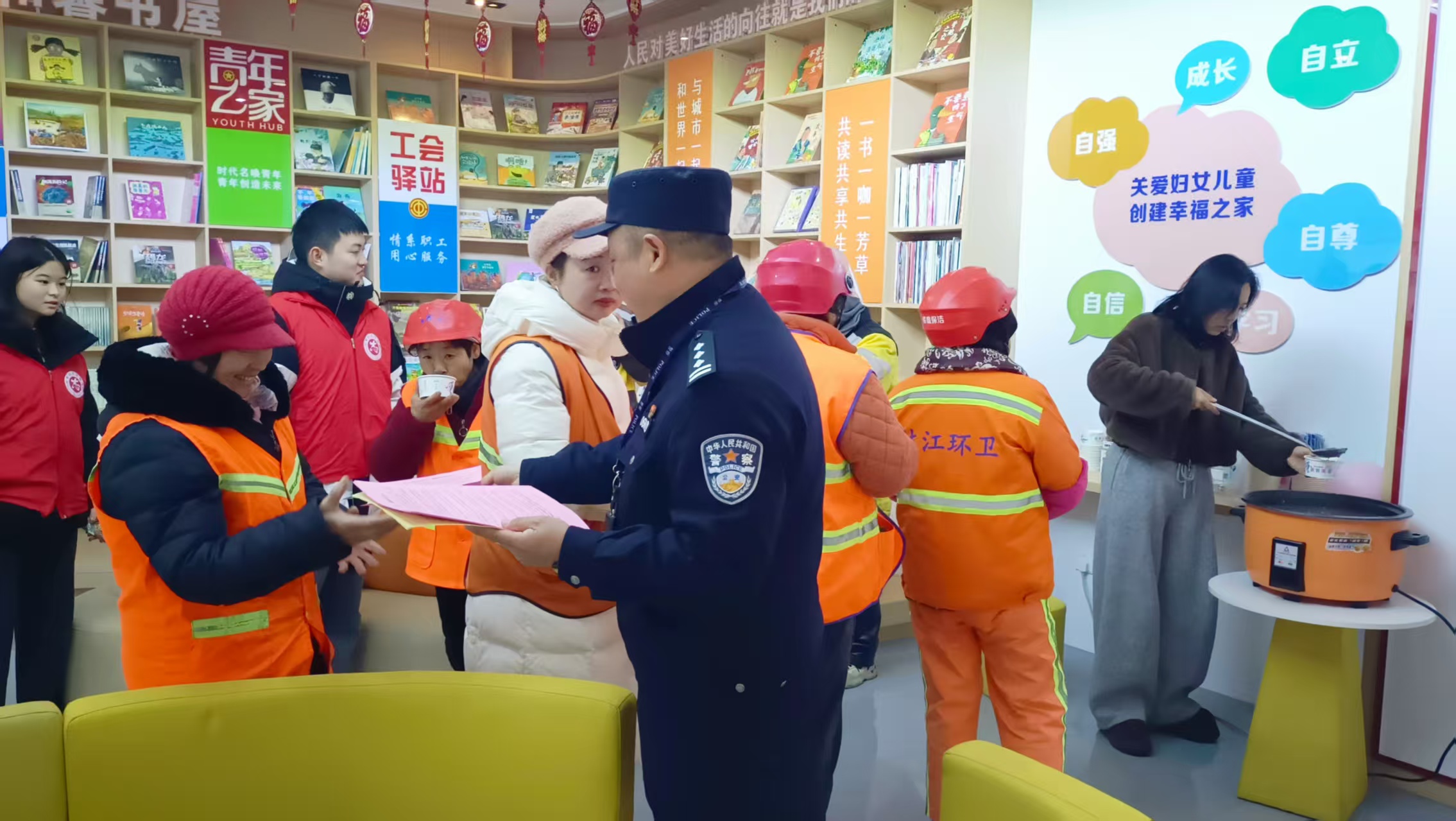 骑手们陆续走进公园小区红领驿站,一碗碗热气腾腾的腊八粥被端到他们手中。“平时都是我们给别人送餐,今天在驿站喝上这口热粥,心里特别暖和。”一位外卖小哥捧着粥碗,笑容朴实。除了腊八粥,工会的工作人员还精心准备了“三餐温暖”实用礼——大米、食用油和牛奶,将节日的祝福化为日常生活的踏实陪伴。