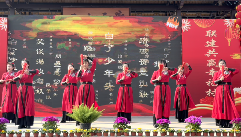 活动在吉祥大鼓串烧《中国范》中拉开帷幕,激昂的鼓点震撼全场。随后,一系列接地气、有温度的节目轮番登场:响扇舞《精忠报国》舞姿刚劲有力,扇影交错间尽显家国情怀;小品《菜地风波》以乡村生活为蓝本,用幽默诙谐的剧情再现了邻里之间从矛盾到和解的暖心故事,引发全场共鸣……整场晚会节目形式多样、内容丰富,既有传统文化的韵味,又有新时代的气息。