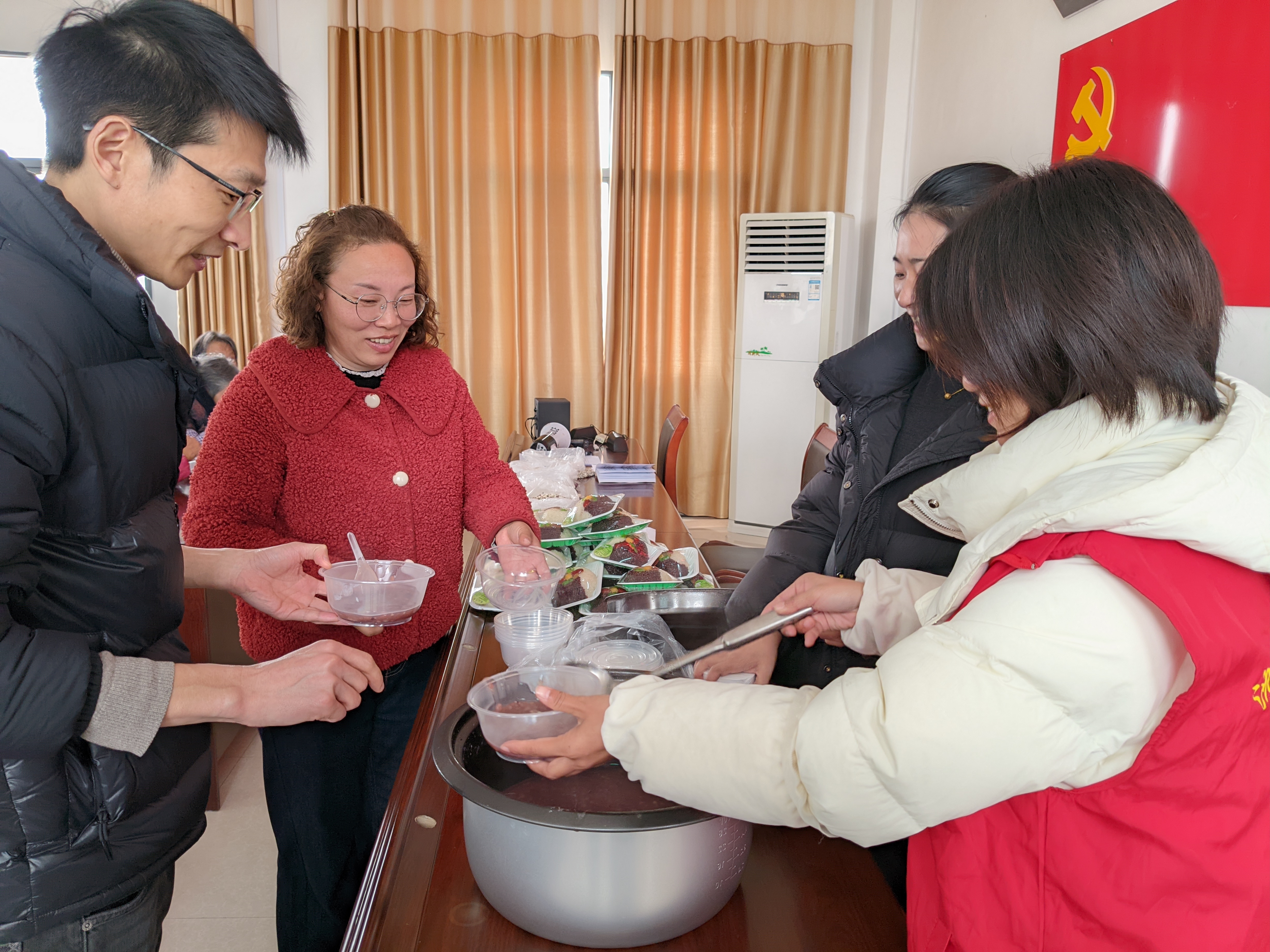当日下午,沈家店村村委会内气氛温馨,村“两委”提前半天,精心准备了热腾腾的腊八粥与软糯可口的八宝饭。本次活动共邀请了三十余名村内60岁以上老党员、困难群众及独居老人代表到场。活动现场,村干部为老人们有序分发节日食品,与他们亲切交流,了解其生活近况与需求,现场洋溢着浓厚的节日温情。