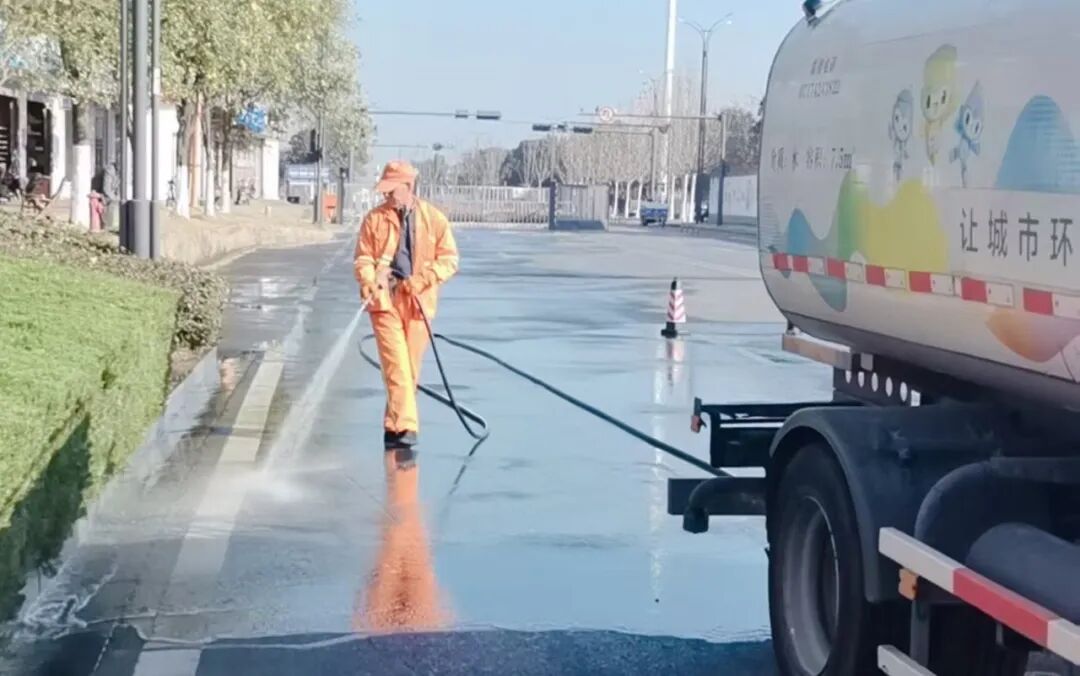 强力洗扫,让城市道路“显本色”。坚持“机械化为主、人工为辅”的作业模式,科学安排时间,实行“夜间深度冲洗、白天巡回保洁”的错峰机制。每日出动各类作业车辆40余车次,对主次干道、背街小巷进行全覆盖洗扫。依据路段特点差异化作业,主路重冲洗降尘,小巷重精细清扫,人行道板则采用小型高压冲洗车配合人工擦洗,全力清除积尘油污,让道路重现清爽本色。