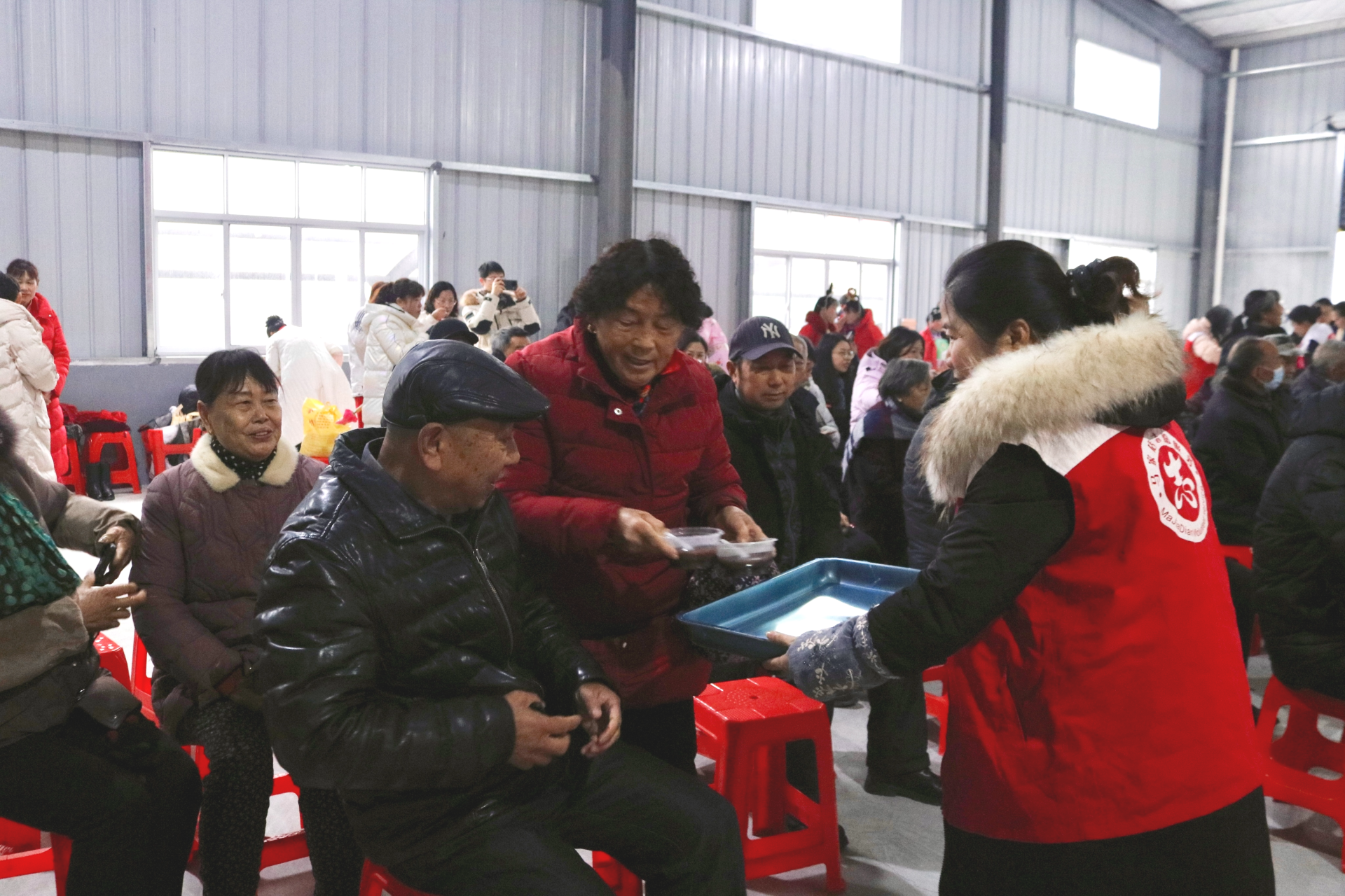 免费腊八粥宴旁,村民们围坐在一起,一碗碗热气腾腾的腊八粥,搭配上爽口的小菜,大家边吃边聊、其乐融融。