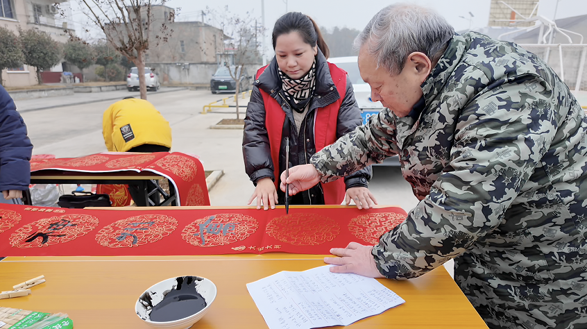 枝江融媒(记者 丁绮梦)新春将至,年味渐浓。1月28日,枝江市文化馆“中国红·翰墨香”新春送春联活动先后走进安福寺镇紫荆岭社区与杨家店村,以笔墨为媒传递新春祝福。