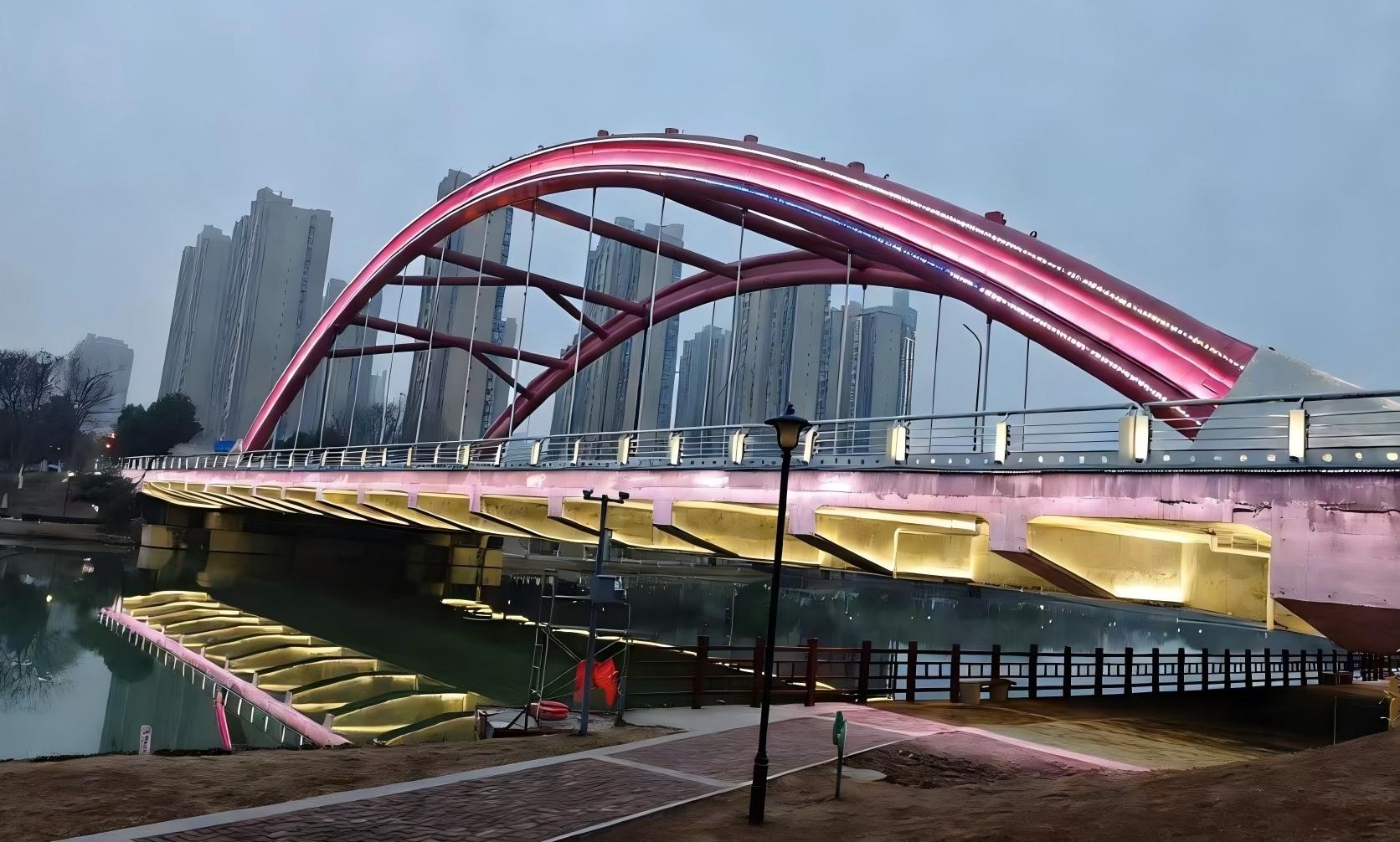 增夜景,添雅韵。五柳公园、丹阳公园的建筑、桥体及丹阳大桥通过灯光勾勒,形成柔和与刚毅相映的夜间景观轴线。随着亮化工作的逐步完工,温暖璀璨的灯光不仅为城市夜景增添色彩,也照亮了人们团圆归家的路。