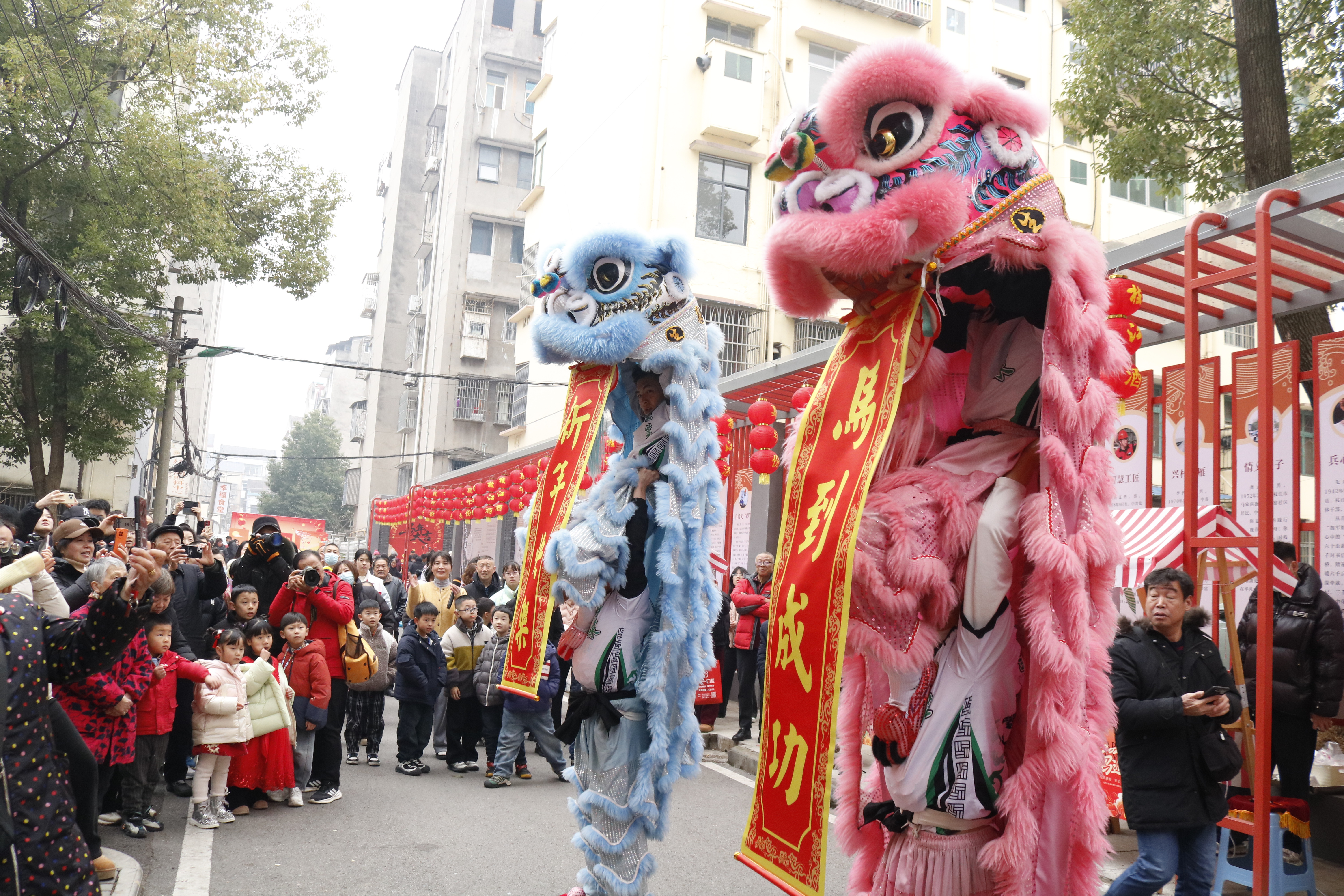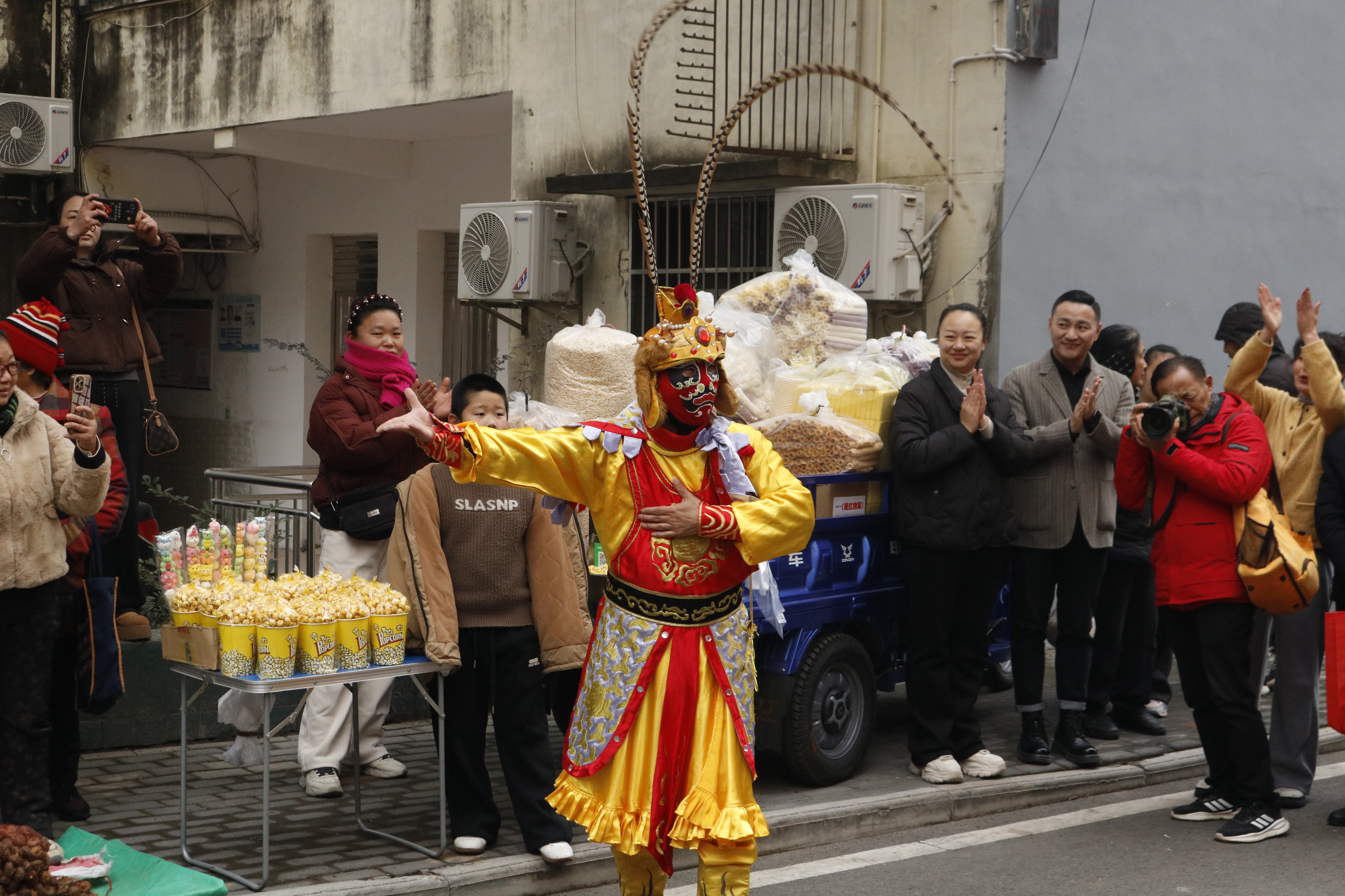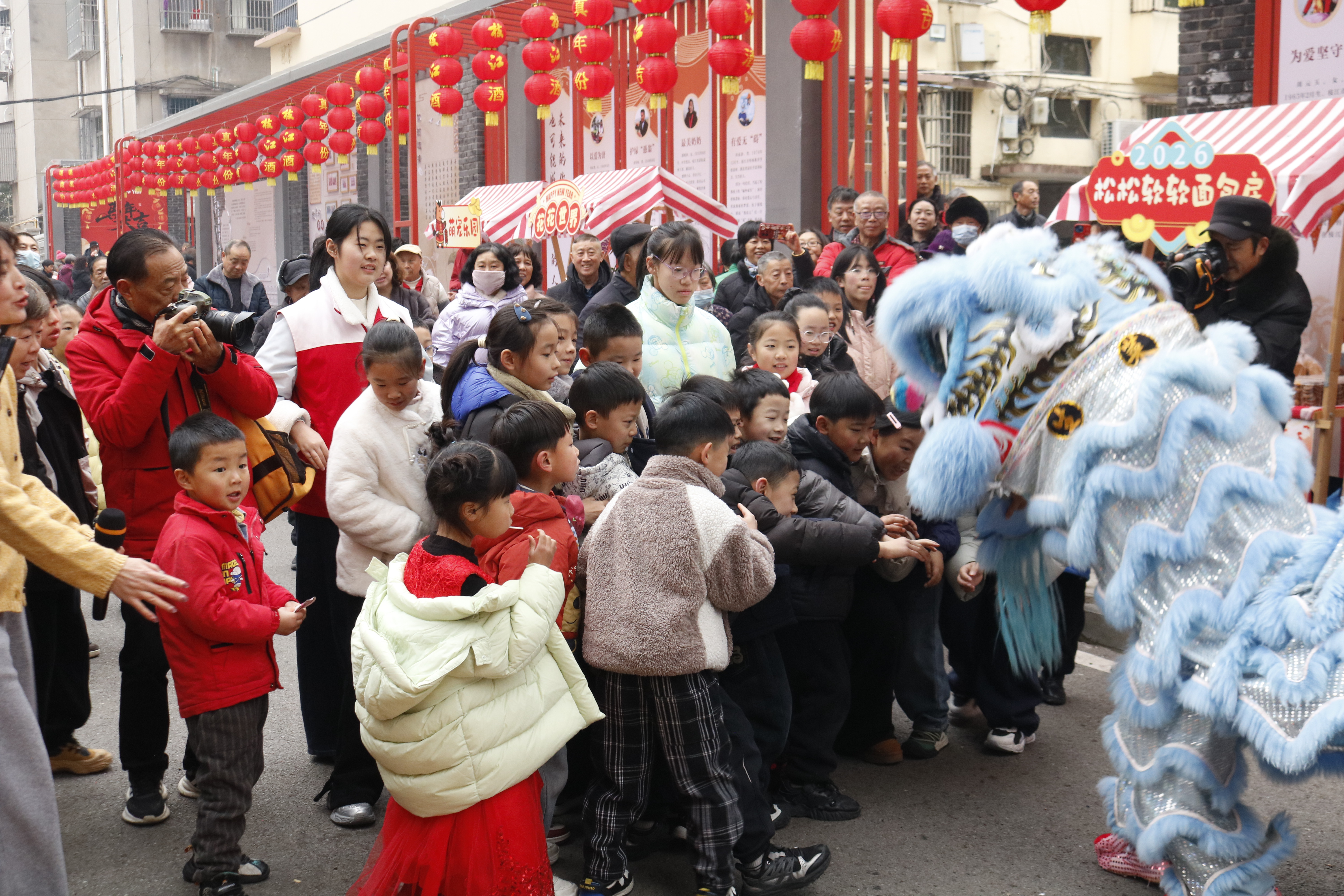 市集现场,喜庆氛围拉满。舞狮腾跃、川剧变脸等特色民俗表演轮番登场,演员们娴熟的技艺、生动的演绎,引得围观居民阵阵欢呼与掌声,将市集的热闹氛围一次次推向高潮。