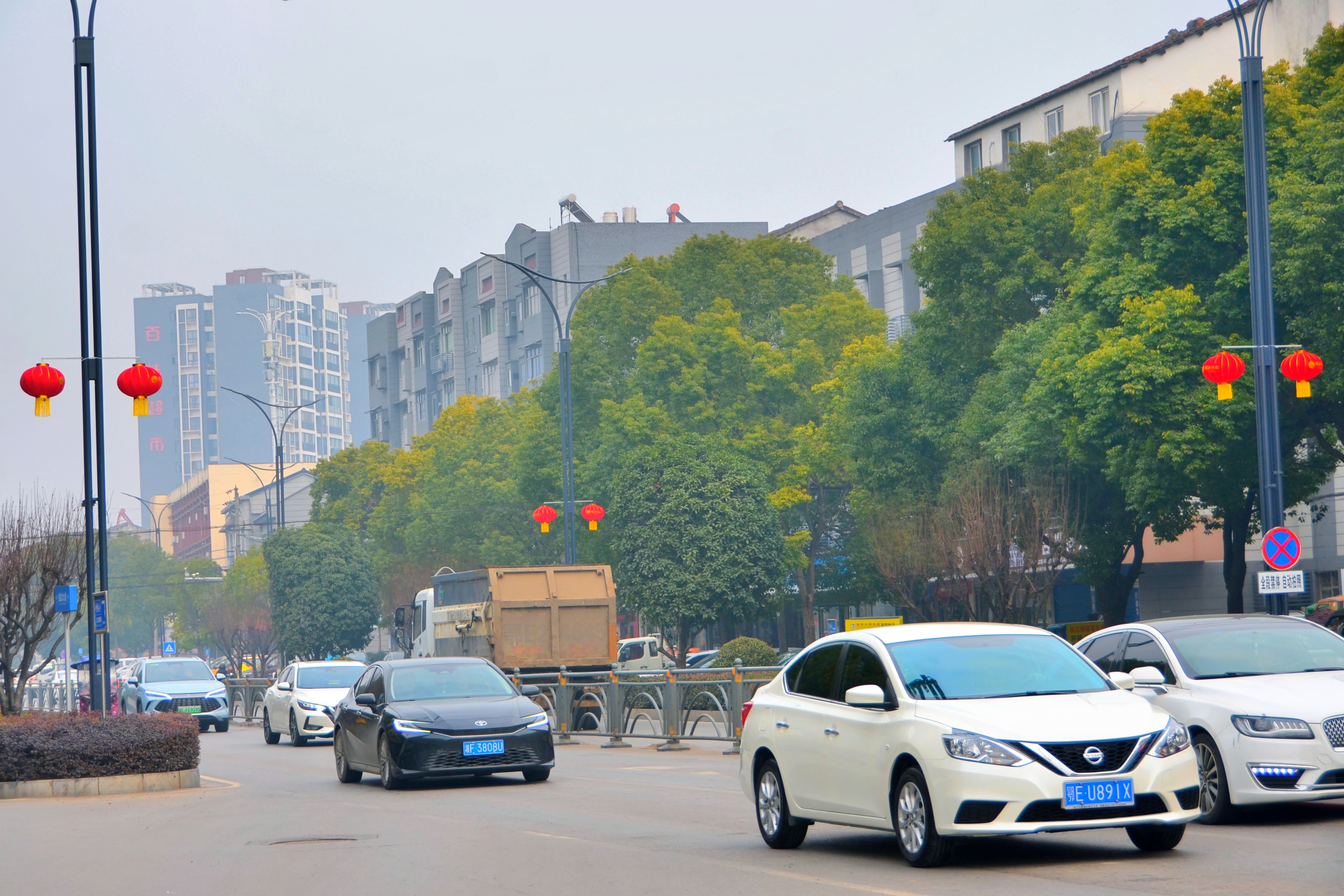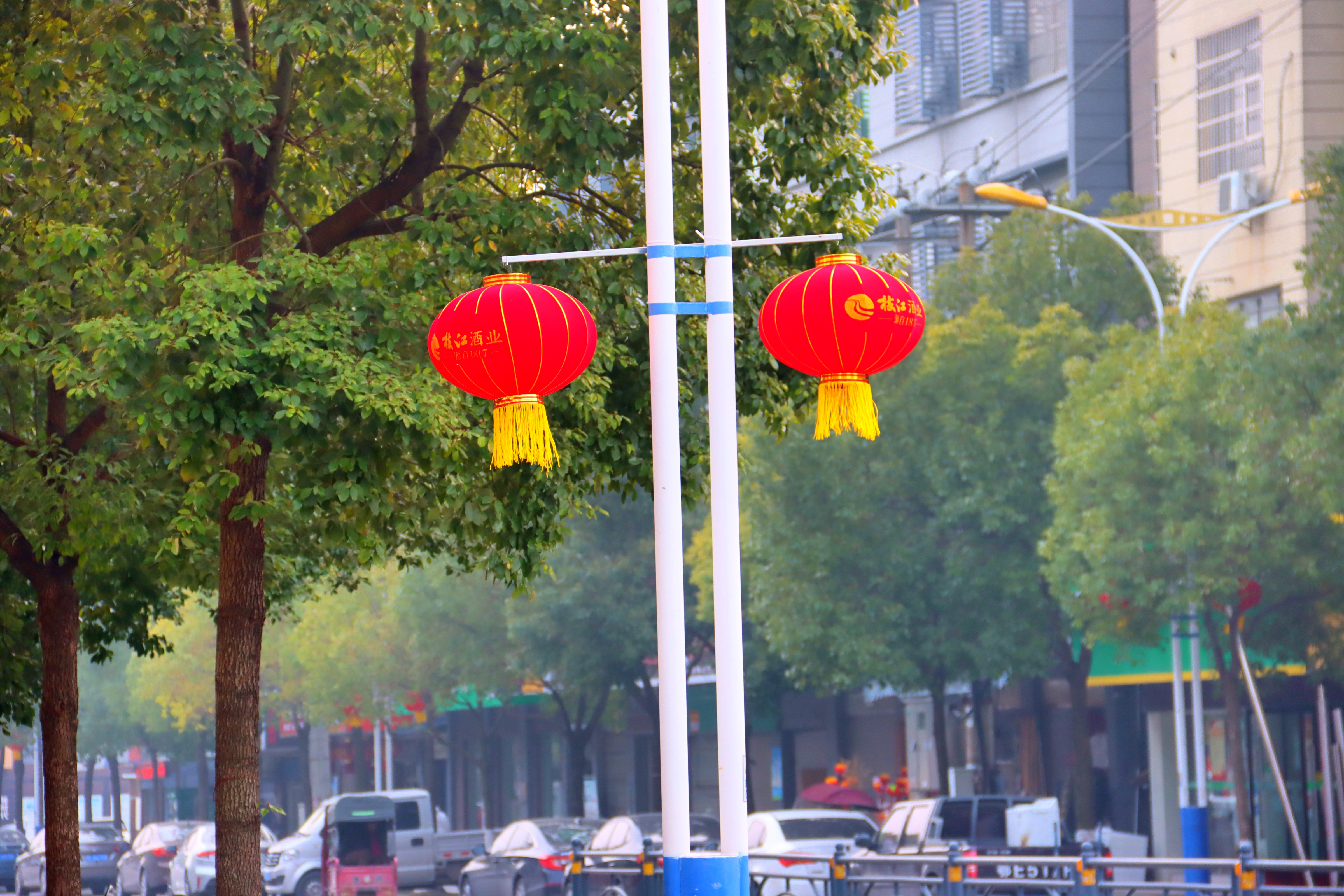 走进董市集镇,主干道两侧的行道树上,一串串红灯笼错落有致地悬挂着,与绿树相映成趣,成为冬日里一道亮丽的风景线,悬挂高度一致的红灯笼,沿着道路向远方延伸,仿佛一条红色的彩带,显得格外喜庆。