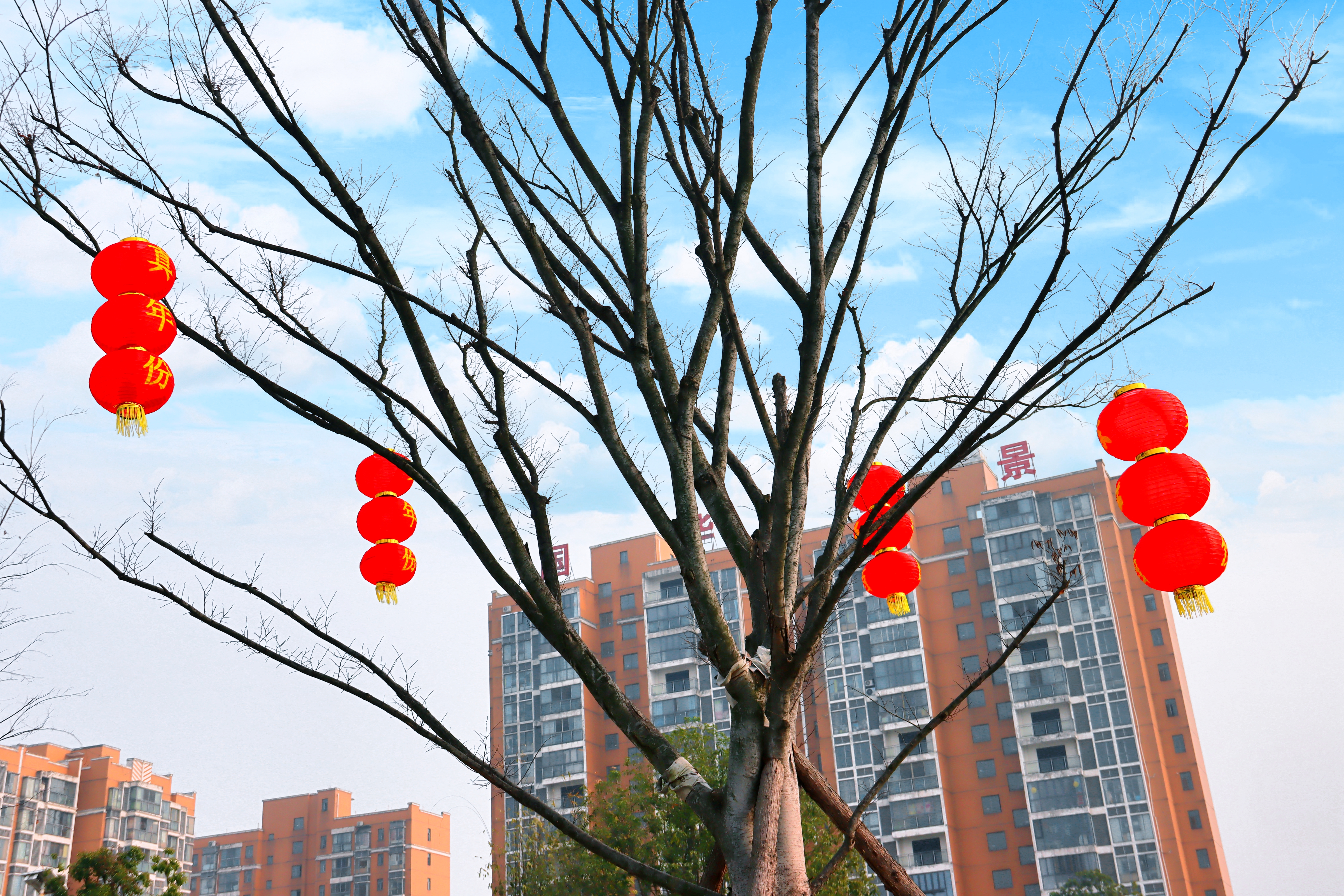 在董和公园、云盘湖公园、心连心口袋公园内,红灯笼与周边的绿植、建筑相得益彰,不仅提升了集镇的“颜值”,更让居民提前感受到了浓浓的年味儿。