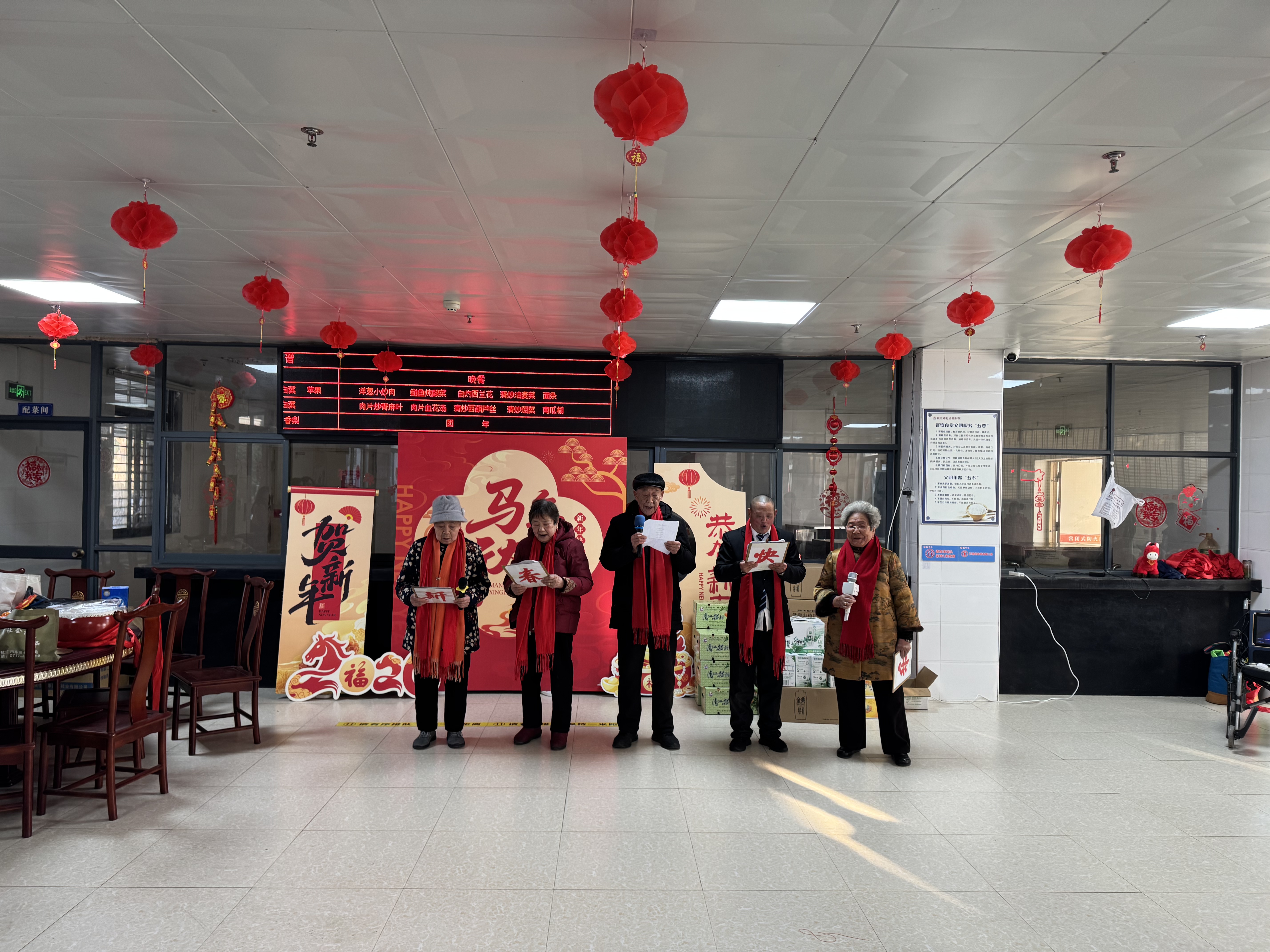 活动在主持人热情真挚的新春致辞中拉开帷幕,院民代表周爷爷登台发言,他用朴实无华的话语,娓娓讲述了自己入住福利院后,从陌生疏离到安心融入的温暖历程,言语间满是对福利院的感恩和对工作人员贴心照料的赞许,真挚的表达打动了现场每一位人。
