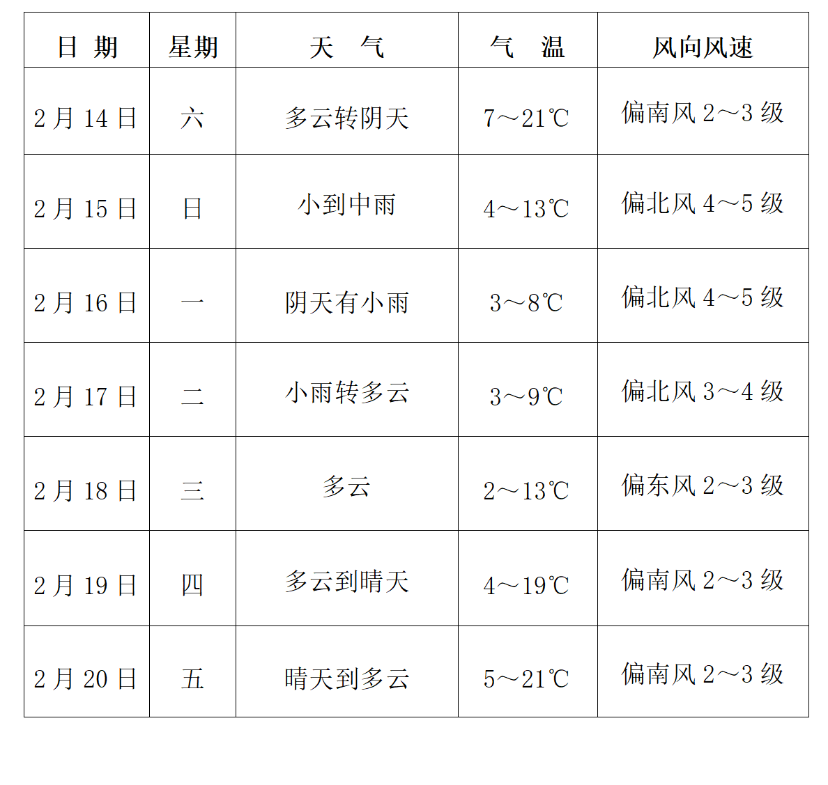 枝江未来一周天气预报(2月14-20日)
