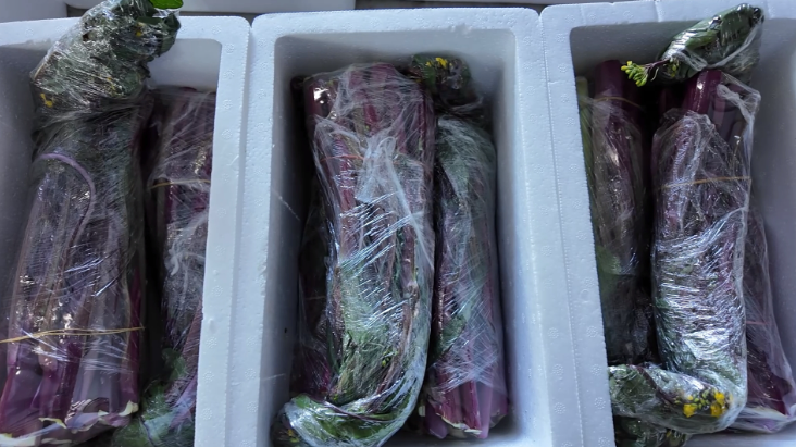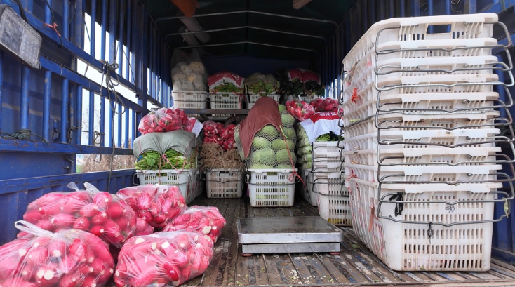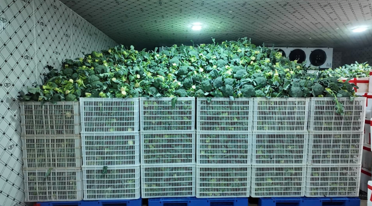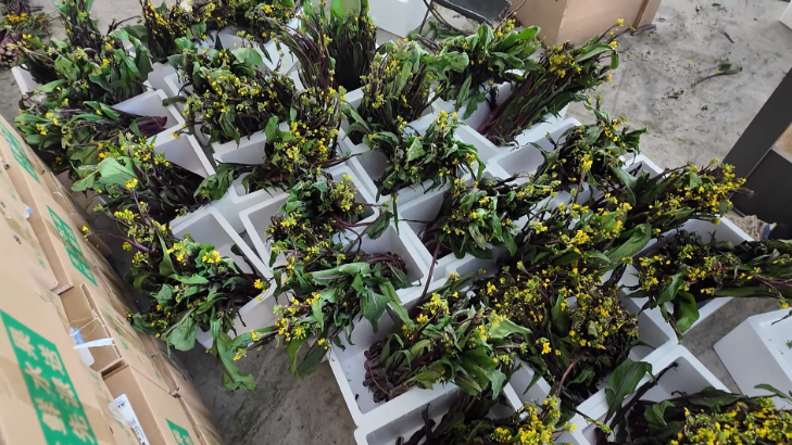 各大蔬菜合作社也在加班加点赶制春节订单。在海源果蔬专业合作社的冷库里,西兰花储备充足,工人们正有序进行保鲜分装。负责人袁林莉介绍:“西兰花采收高峰期,每天可采收8万到10万斤,通过打冰、装泡沫箱进行保鲜,主要销往河南、北京、山东等地。目前正抓紧春节市场备货。”