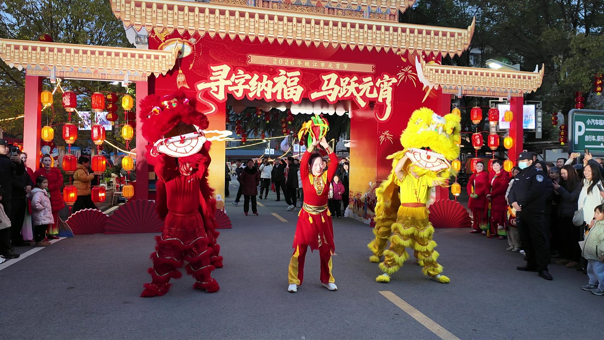数百盏原创灯谜灯笼错落悬挂,分区域灯谜各具特色,猜中即可获马年剪纸贴画。此外,欢乐竞技、幸福合影等互动环节趣味十足,舞龙舞狮、踩莲船巡游等传统民俗表演轮番登场,将现场气氛一次次推向高潮。集齐福帖的市民还可参与抽取终极大奖,欢声笑语中,年味与文化味交融,尽显传统元宵的喜庆底蕴。