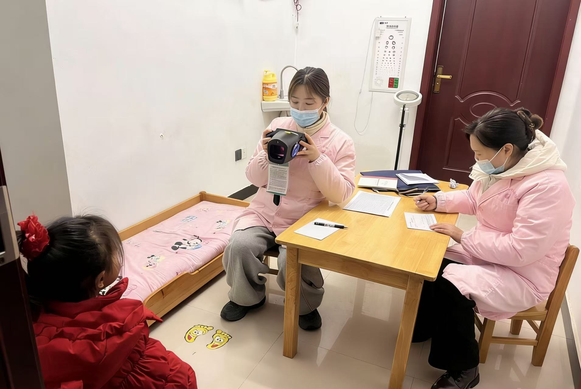 体检工作启动当天,筛查团队首先来到马家店街道江口幼儿园。在幼儿园老师的有序引导下,孩子们主动配合各项检查,医护人员分工协作、细致操作,以耐心贴心的态度,高效完成首轮体检各项流程。